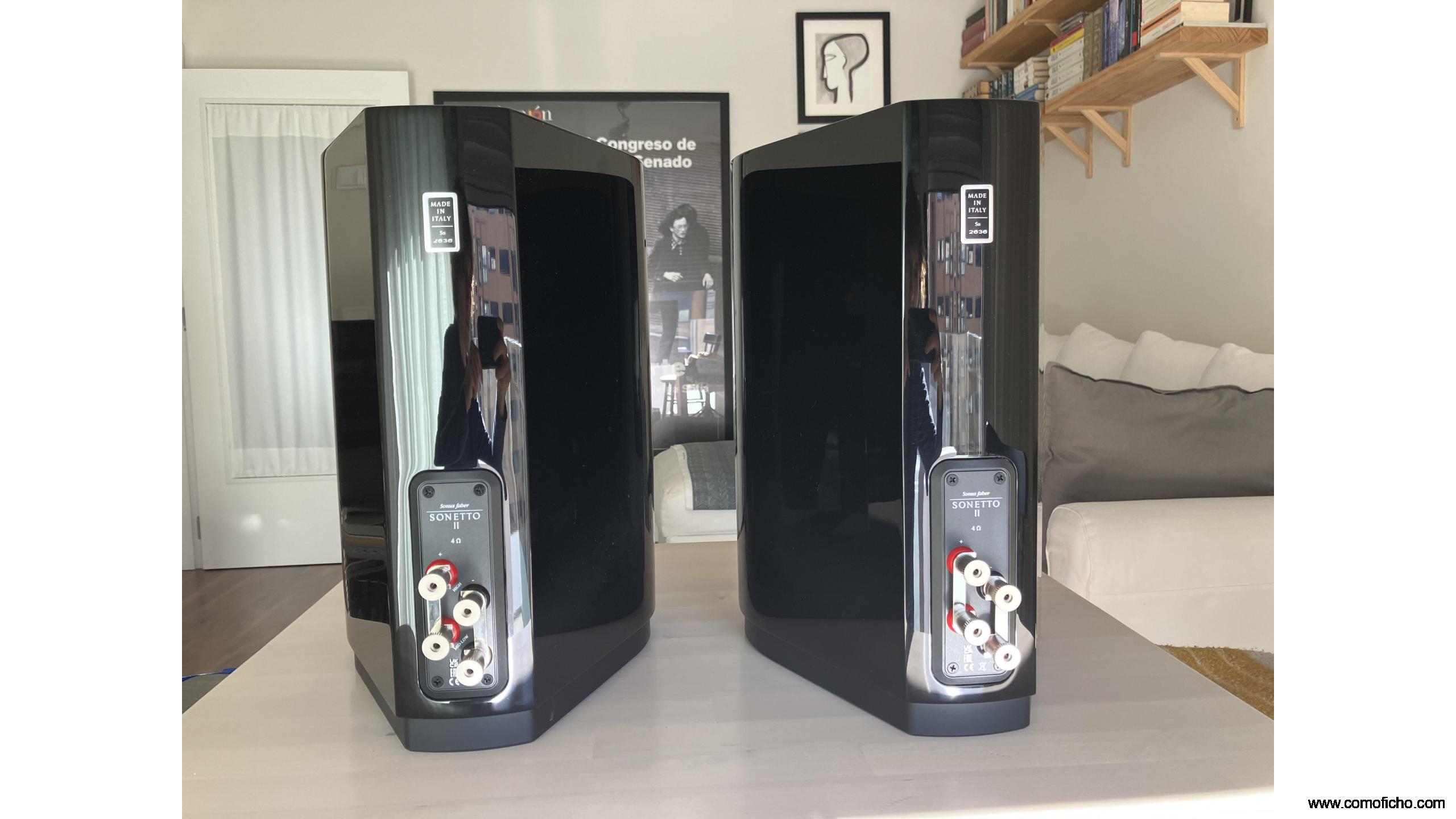 Par de altavoces marca Sonus Faber modelo SONETTO II. Acabado negro piano y piel. Están nuevos con garantía y factura de Supersonido hasta Octubre 2026. Dimensiones 200 x 369 x 304 mm. Se venden con los puentes.