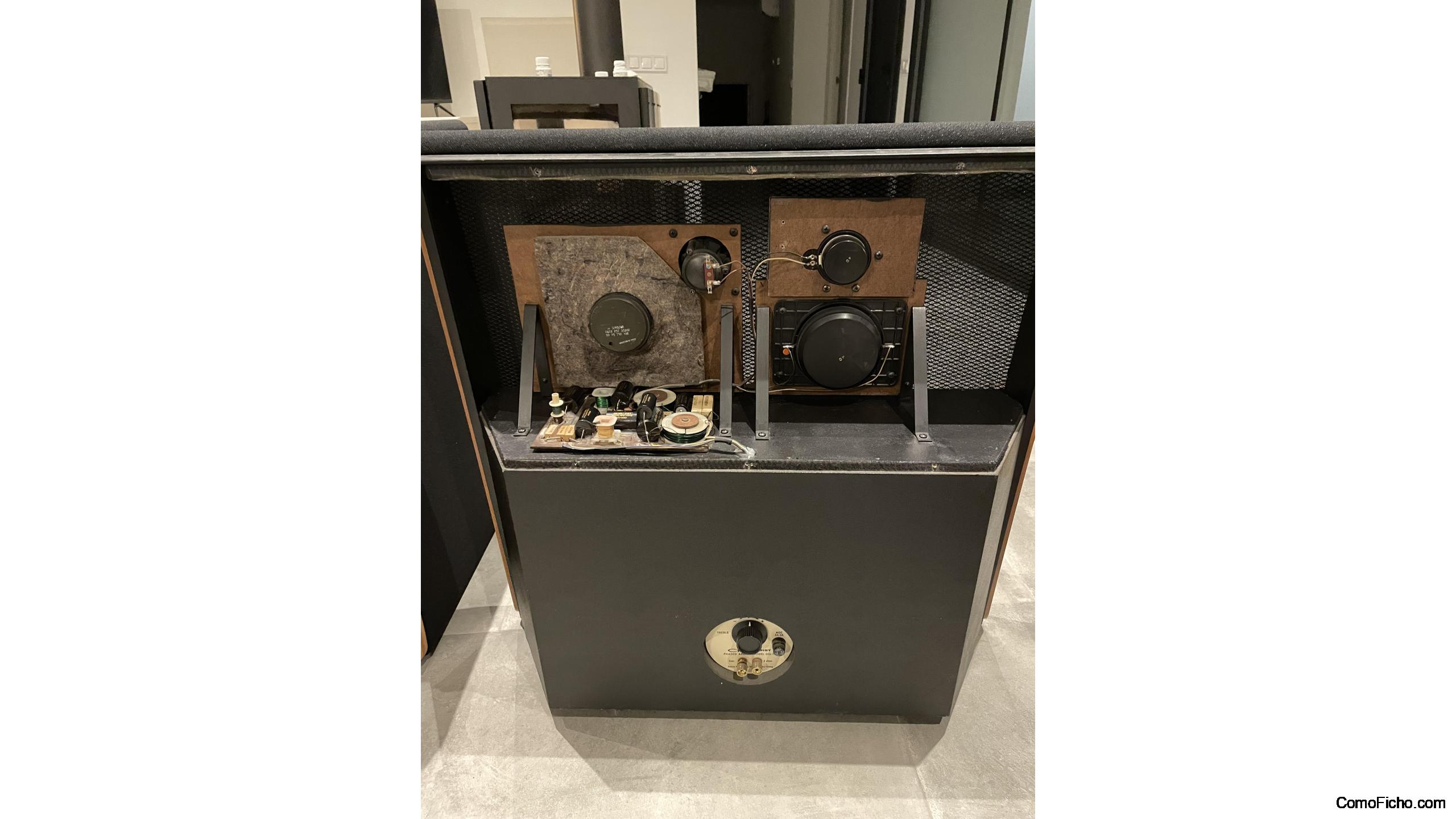 Altavoces Dahlquist DQ10 en impecable estado, como se ven en las fotos. Funcionan a la perfección. Se venden con un año de garantía por escrito. Son los famosos altavoces diseñados y fabricados por Saul Marantz y Jon Dahlquist. Se han actualizado por famoso ingenierio electroacústico (MM), con condensadores nuevos Jantzen, de más calidad, se han substitudo las suspensions de graves (Advent Large) i graves medios (Philips AD5060). Se han cambiado las telas acústicas por unas nuevas más transparentes acústicamente (se conservan las originales en buen estado).