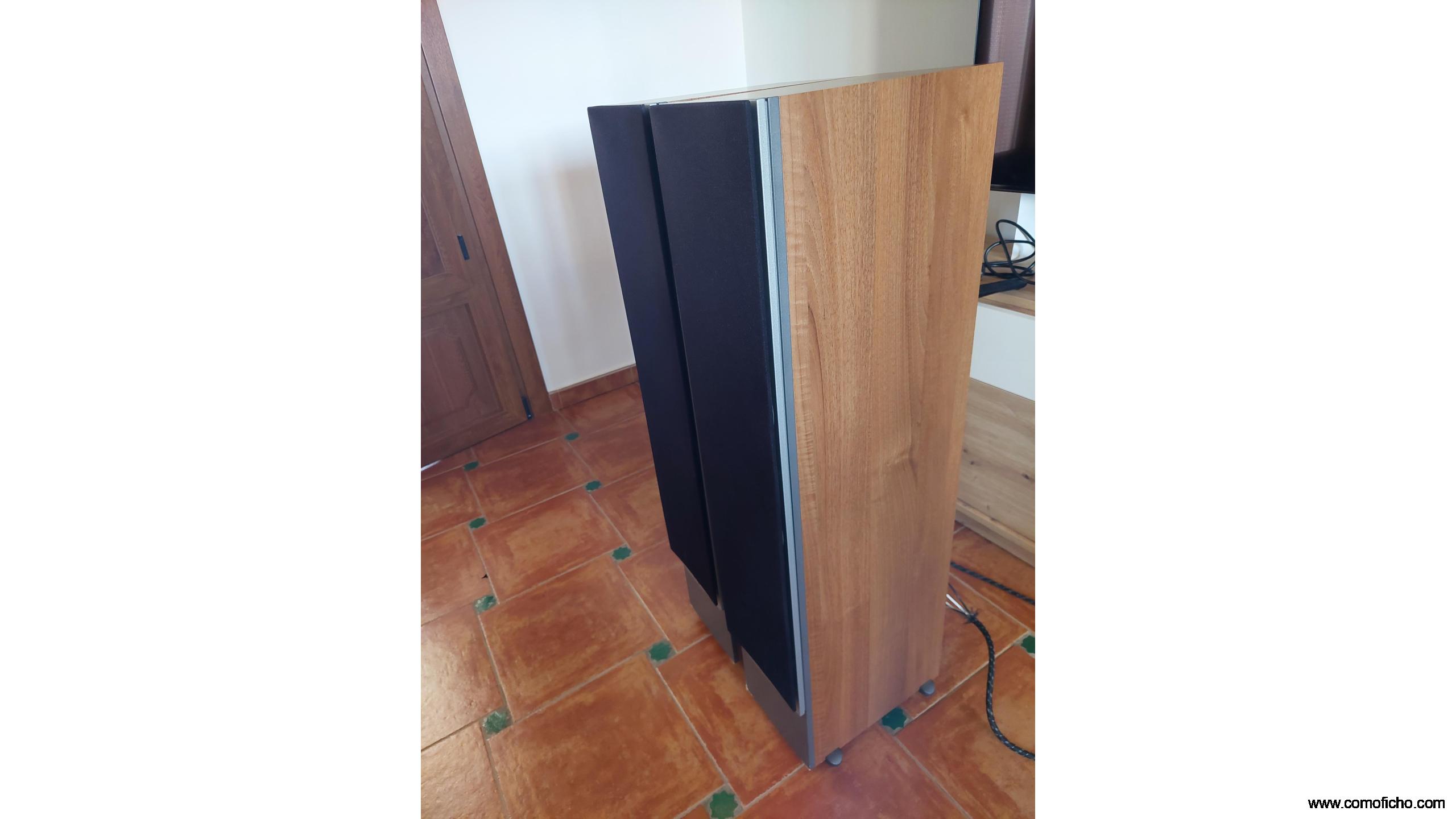 Fantastic speakers in very good condition. Bi-wireable. Lovely sound . Easy to drive, 91db/6ohm. Suits any amp 25w to 150w. Well cared for, wood and grille in perfect condition, slight wear at bottom .