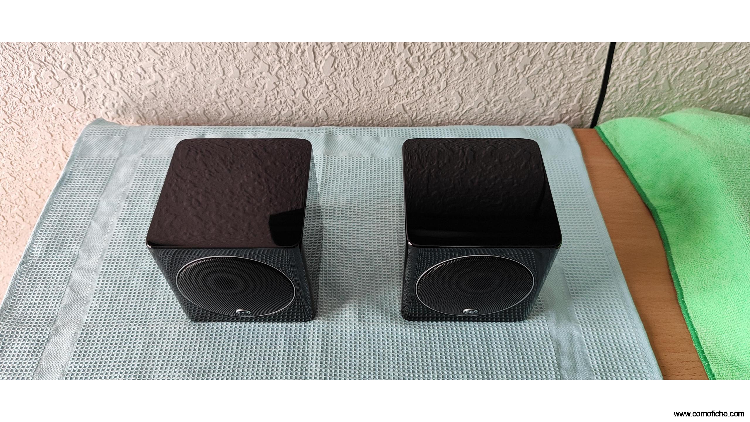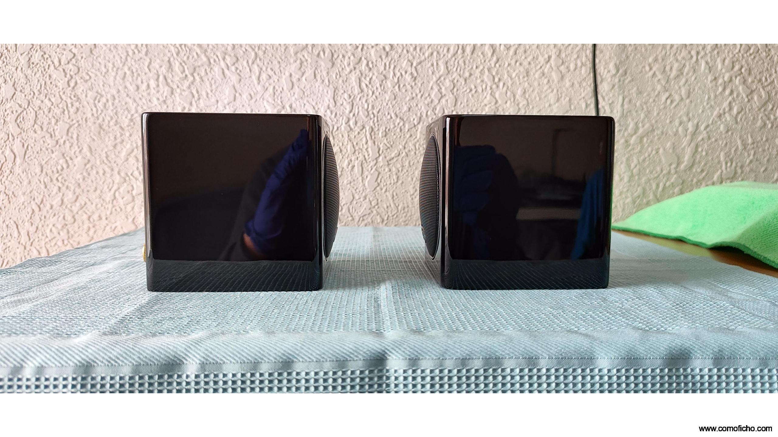 Diseño Compacto: Un cubo de 10cm ideal para espacios reducidos o sistemas de cine en casa.