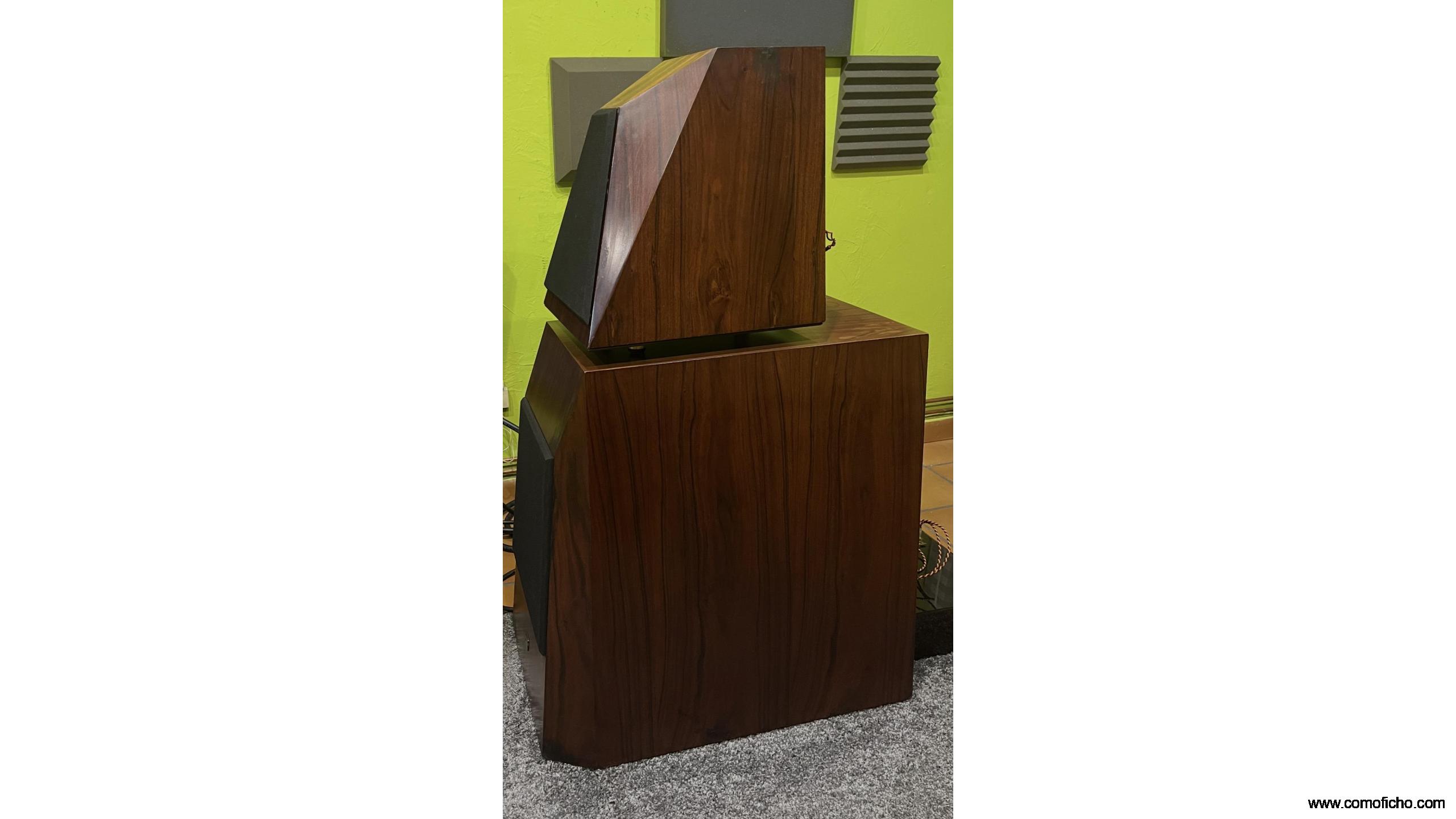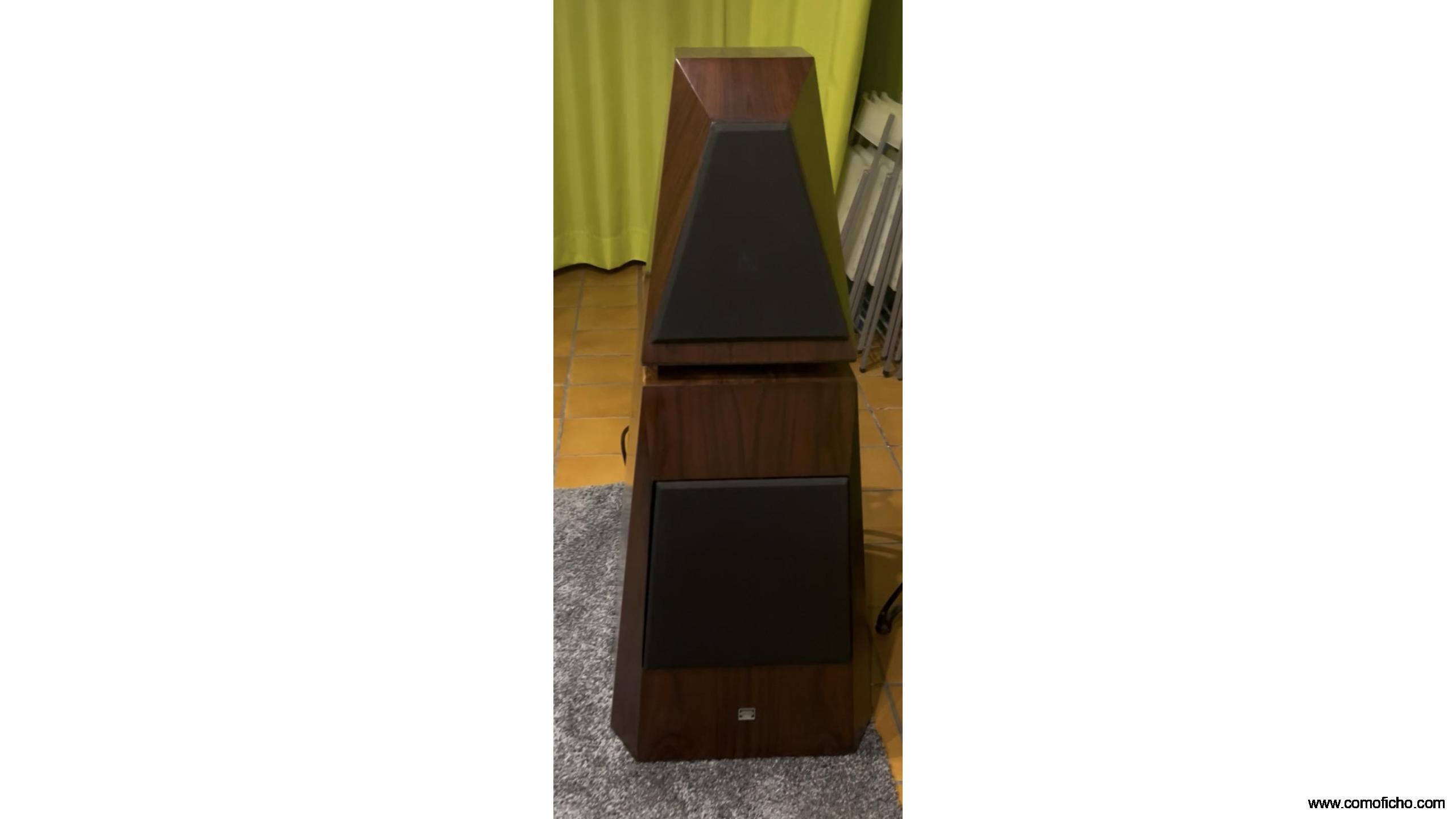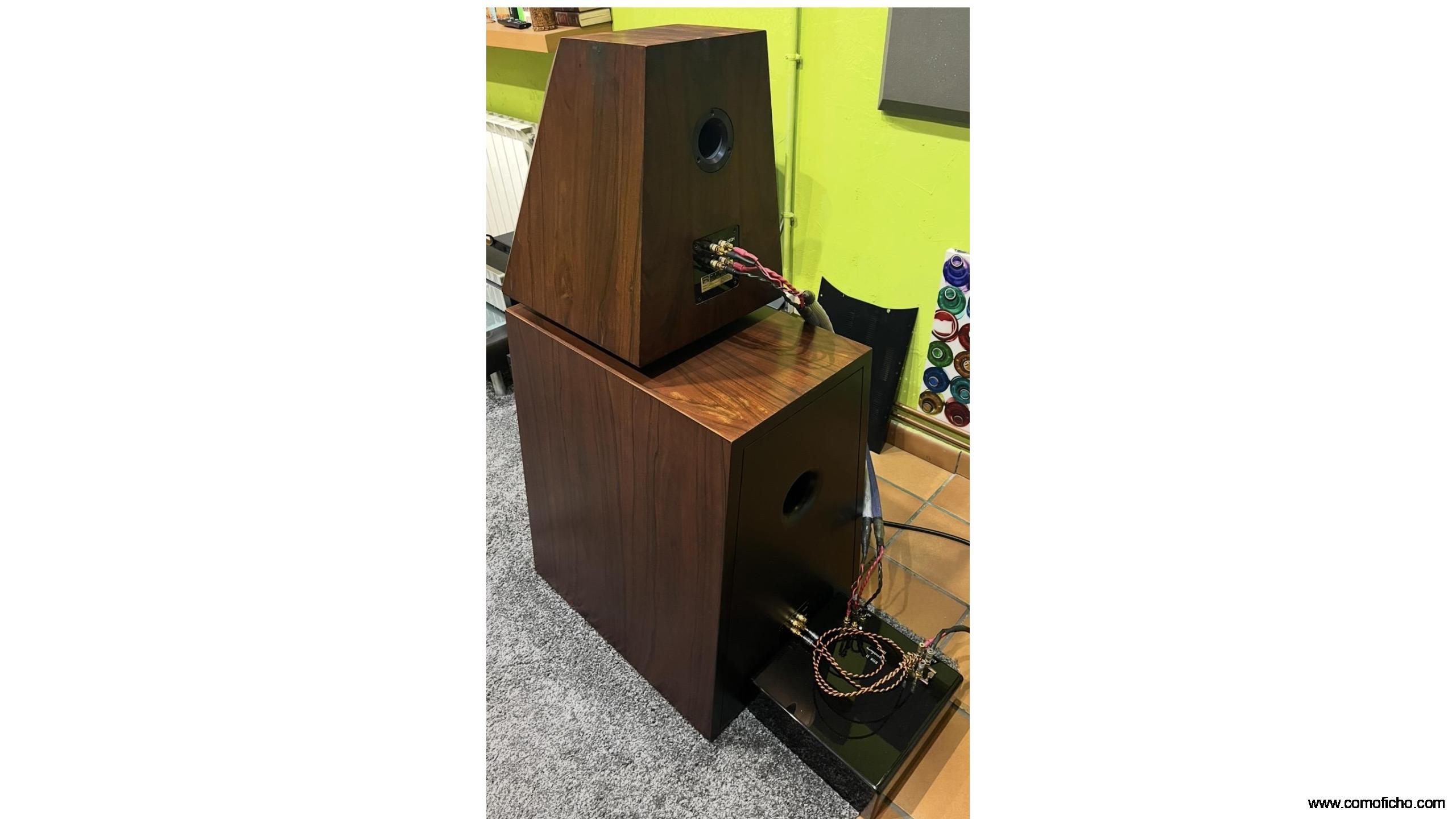 Cajas de referencia absoluta. 23000€ PVP Son las version más alta de gama. Únicas en España. Drivers Accuton y Eton. Se adaptan a cualquier sala ya que el monitor va independiente del cajón de graves con su propio crossover. Cuentan con varias combinaciones, se pueden biamplificar, triamplificar, etc… Solo el monitor ya llena una sala de 20 mts bajando por debajo de 40 Hz , aunque como más se disfrutan son en una sala grande . Son espectaculares en todos los sentidos. Van incluidos los jumpers con cable NBS. Prefiero no enviarlas debido a su peso
