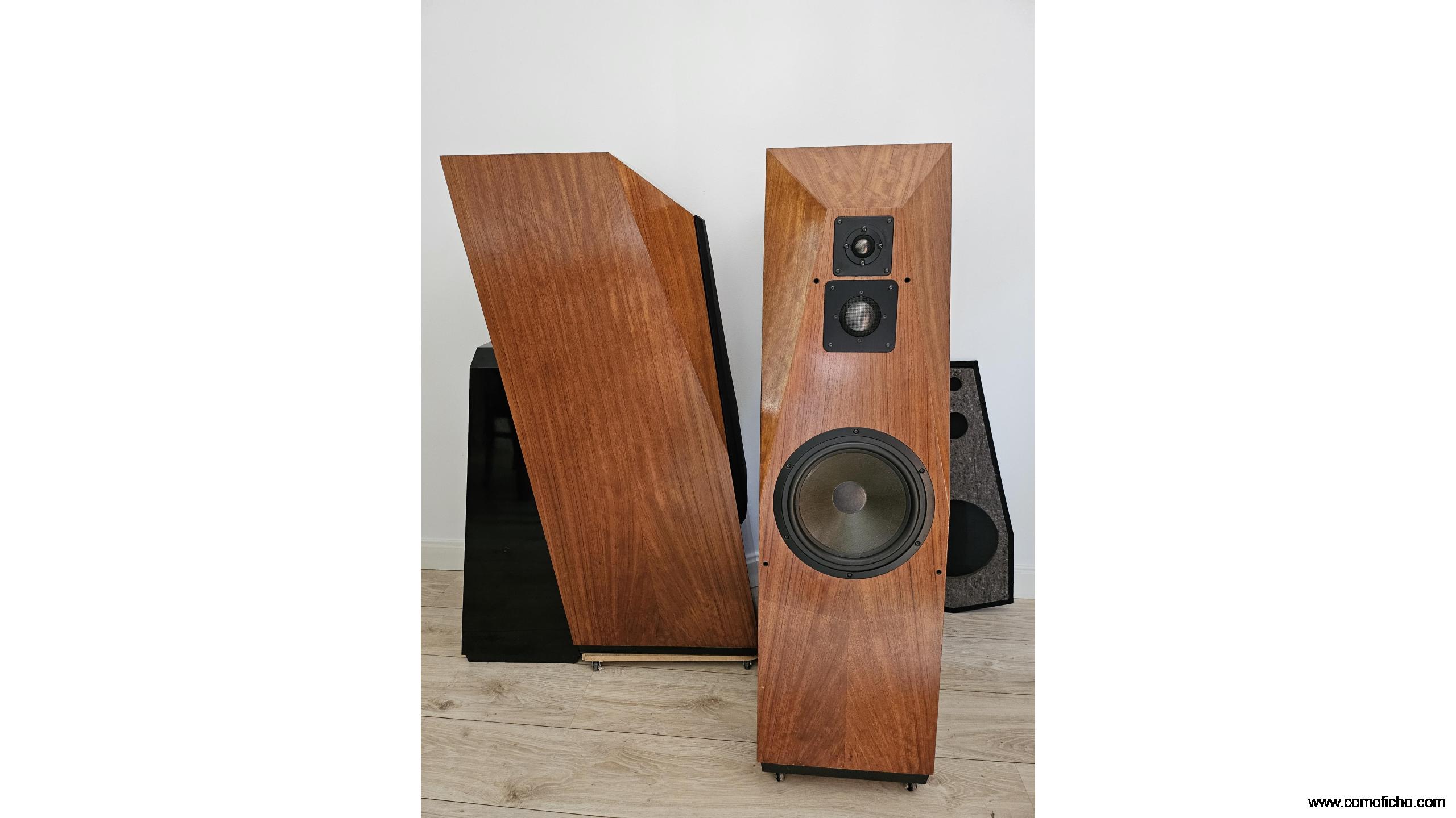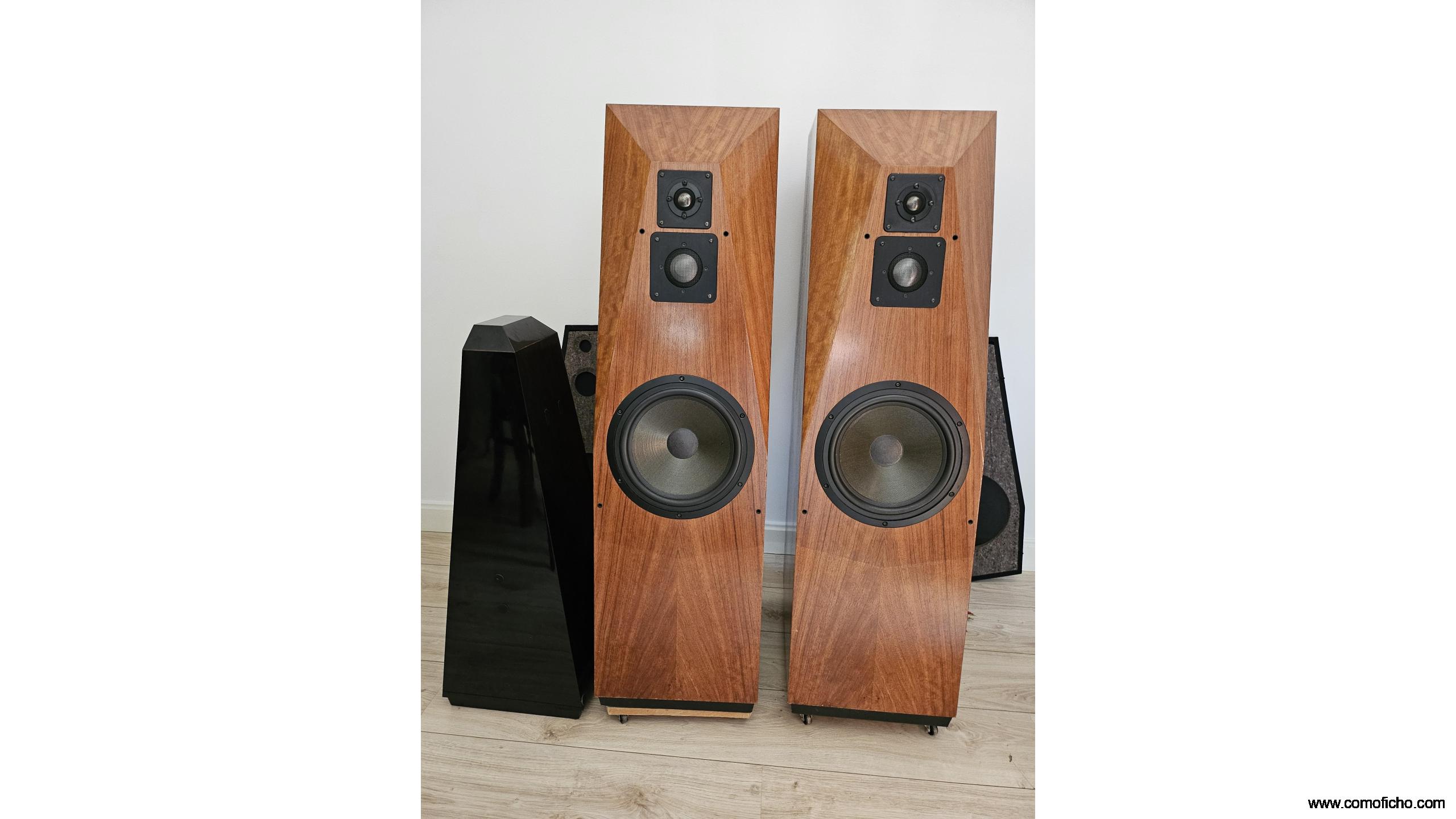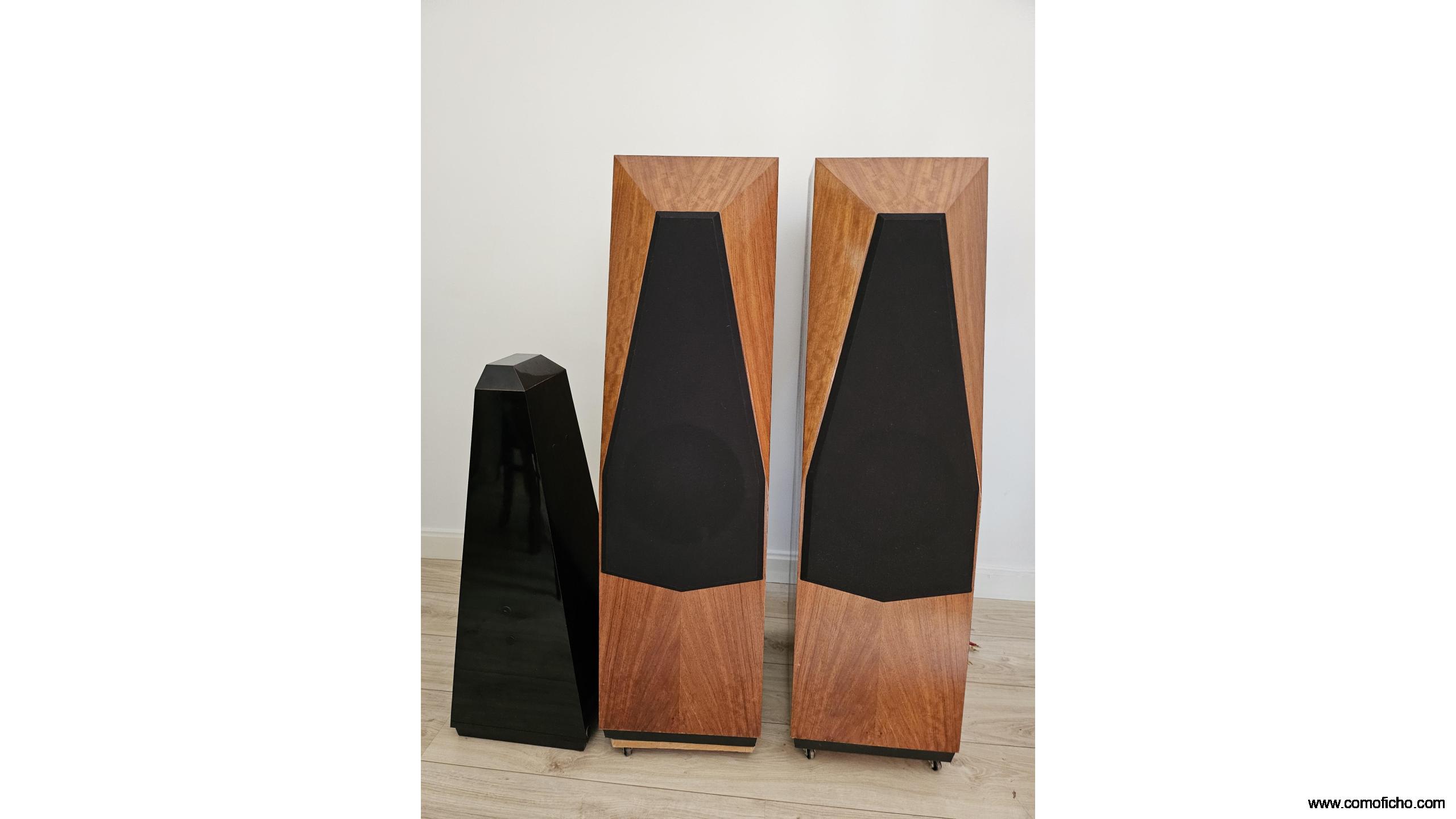 Están como nuevas.Buque insignia en los 90 hasta el 98.Su enorme peso(90 kg)y estructura son debidos al afán de implantar una tecnología pionera y propia(1980)que la hace inerte,sin coloración.Leer "avalonacoustics.com/silent-inert-composite/.Por ello es muy diferente a la mayoría de las otras cajas acústicas aparte de sacar el enorme crossover de dentro(27.5 kg).No es muy exigente en vatios pero sí en corriente.Su precio era de 30.000 euros.Su configuración en dos piezas de este tamaño es única.Se puede triamplificar.Admito material HIFI pasivo a cuenta .