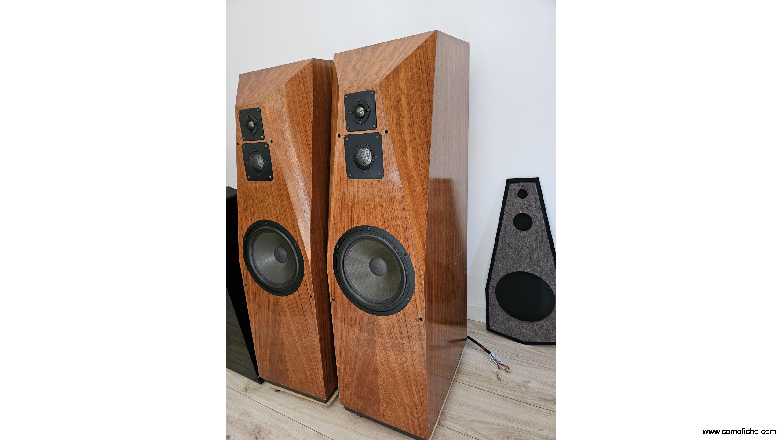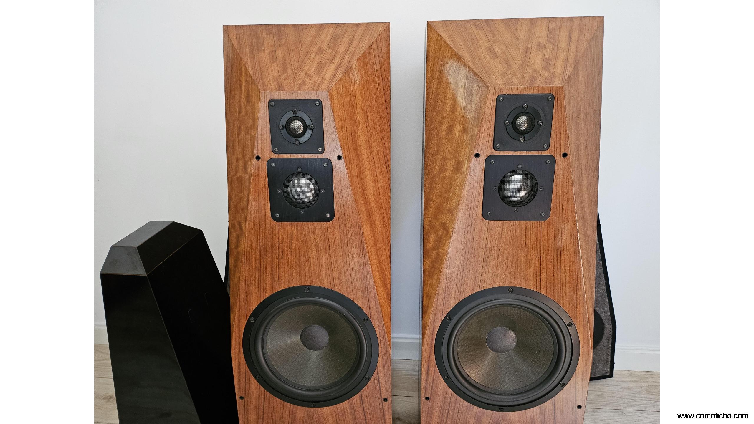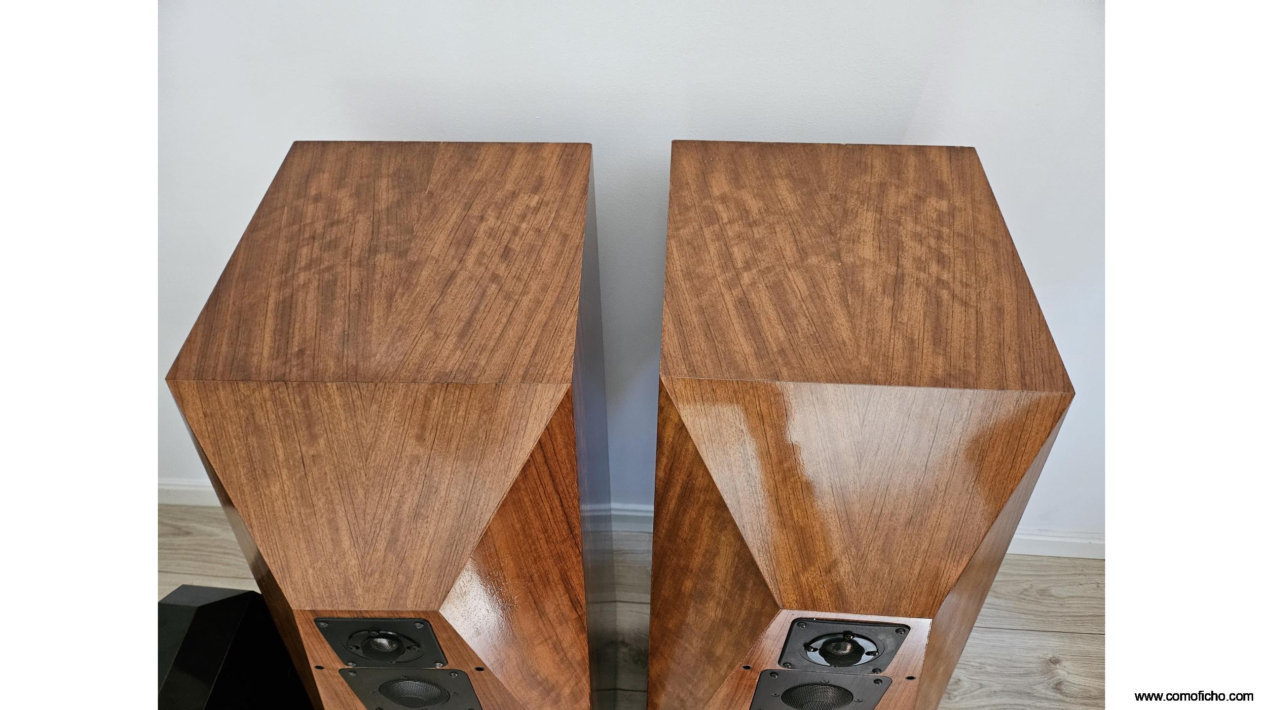 Están como nuevas.Buque insignia en los 90 hasta el 98.Su enorme peso(90 kg)y estructura son debidos al afán de implantar una tecnología pionera y propia(1980)que la hace inerte,sin coloración.Leer "avalonacoustics.com/silent-inert-composite/.Por ello es muy diferente a la mayoría de las otras cajas acústicas aparte de sacar el enorme crossover de dentro(27.5 kg).No es muy exigente en vatios pero sí en corriente.Su precio era de 30.000 euros.Su configuración en dos piezas de este tamaño es única.Se puede triamplificar.Admito material HIFI pasivo a cuenta .