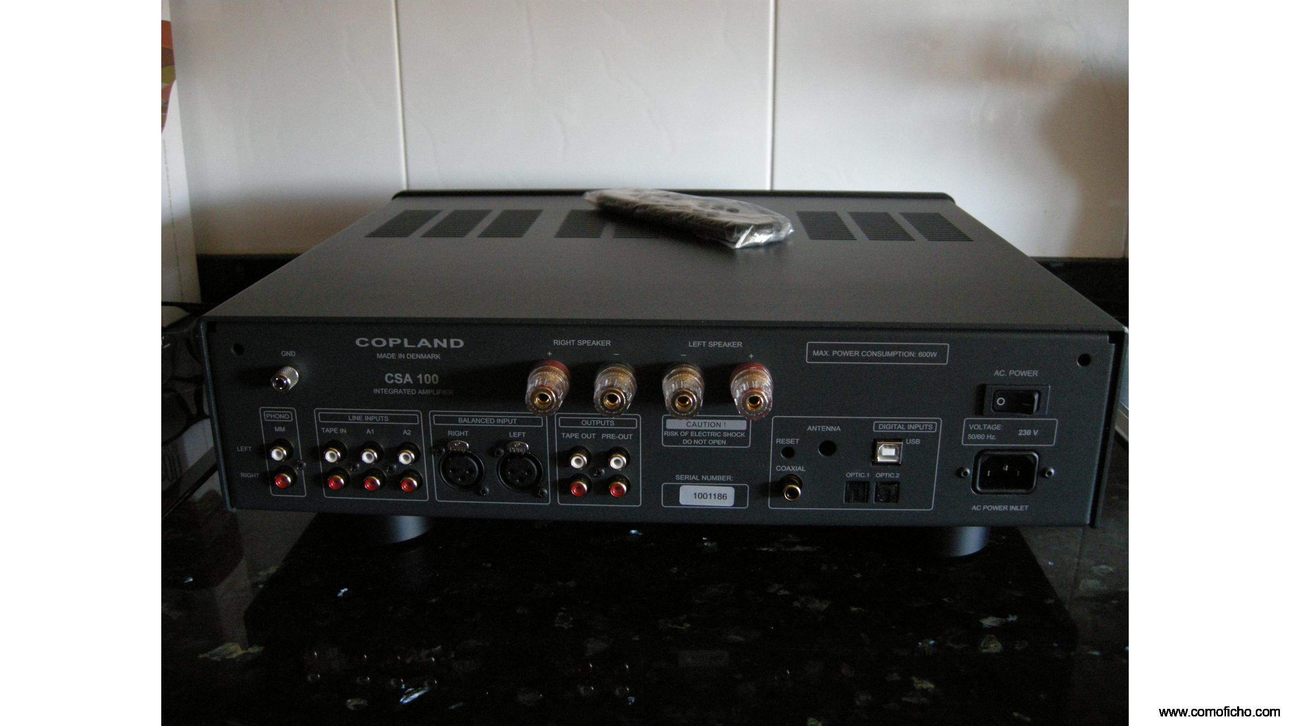 Vendo amplificador Copland CSA-100 en perfecto estado e igual que de estreno. Es un amplificador de muy alta calidad, con un diseño elegante y sofisticado y el que tiene mejor sonido y mejor valorado de toda la gama