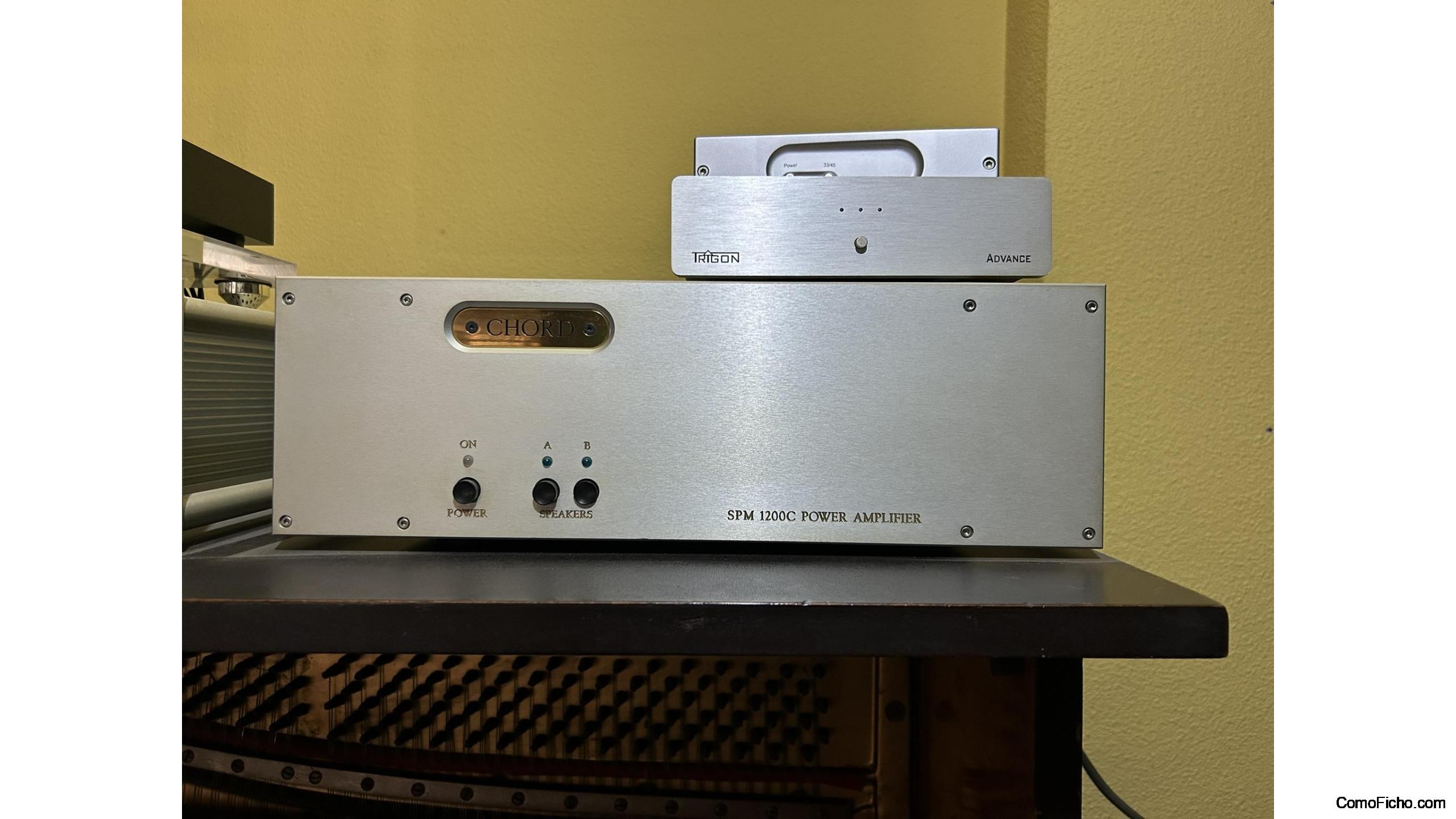 Amplificador de potencia estéreo Chord SPM 1200C MK1, reconocido por su gran calidad sonora y potencia limpia. Ofrece 340W RMS por canal a 8 ohmios con muy baja distorsión y alta fidelidad, proporcionando un sonido transparente, detallado y control preciso sobre todo tipo de altavoces. Ideal para audiófilos y sistemas de alta gama que buscan riqueza en detalle y dinámica musical. Equipo robusto, con chasis sólido y diseño clásico que asegura durabilidad y rendimiento