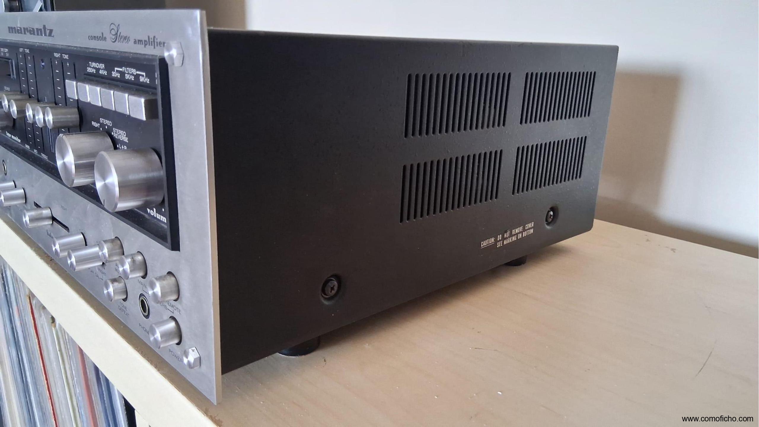 El amplificador está en muy buen estado y funciona perfectamente. Presenta algo de suciedad y arañazos propios del tiempo. La esquina superior derecha se dobló ligeramente durante el envío, pero se reparó, aunque se aprecia una pequeña abolladura.
