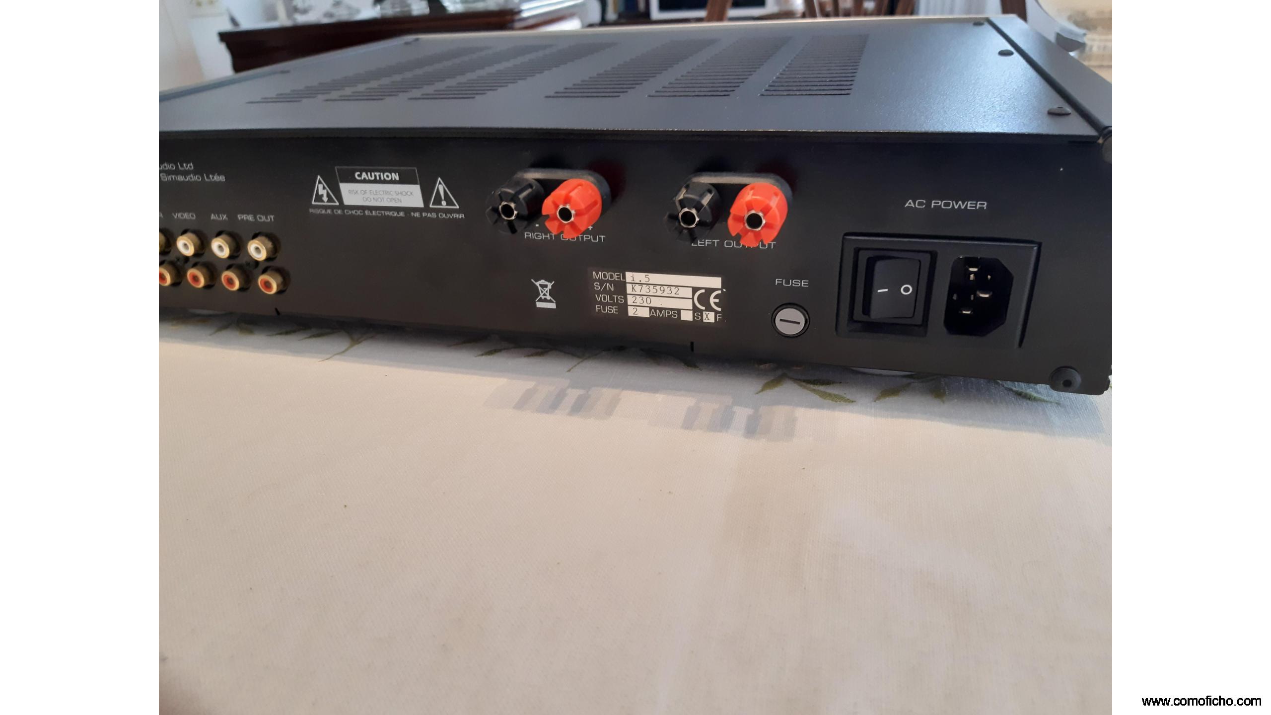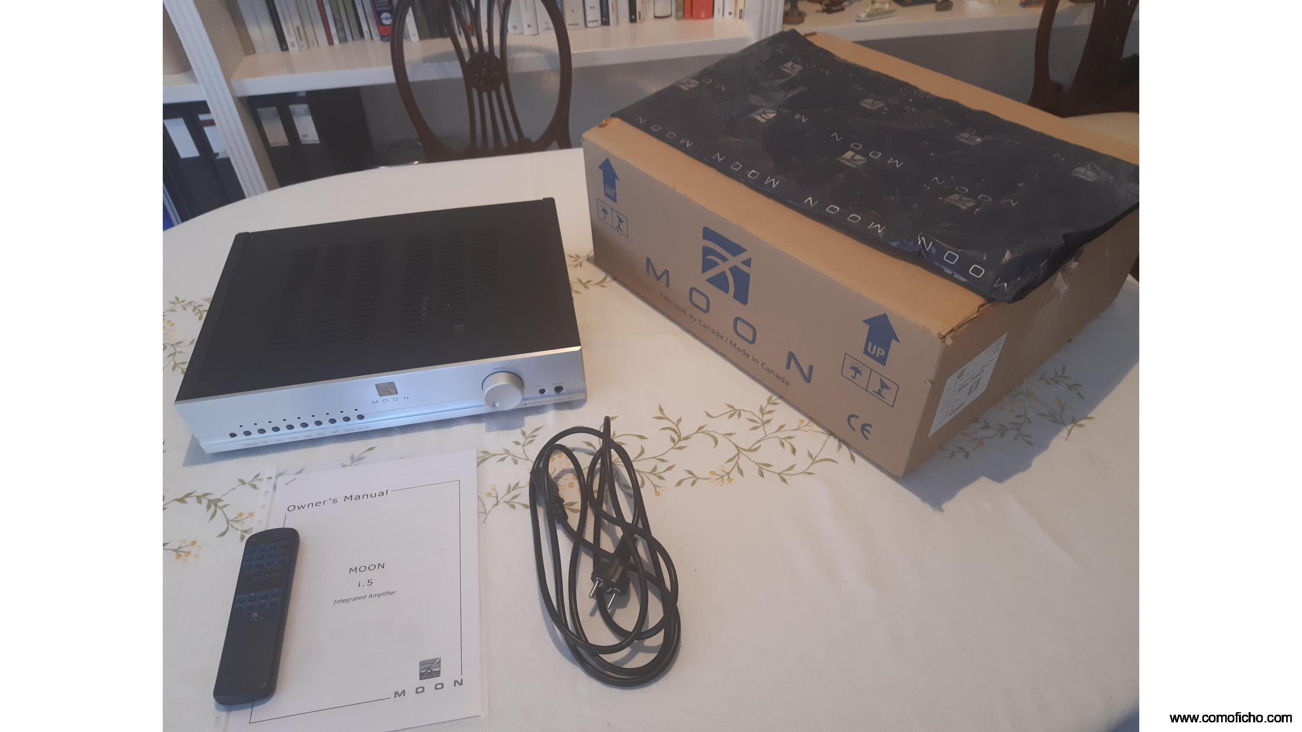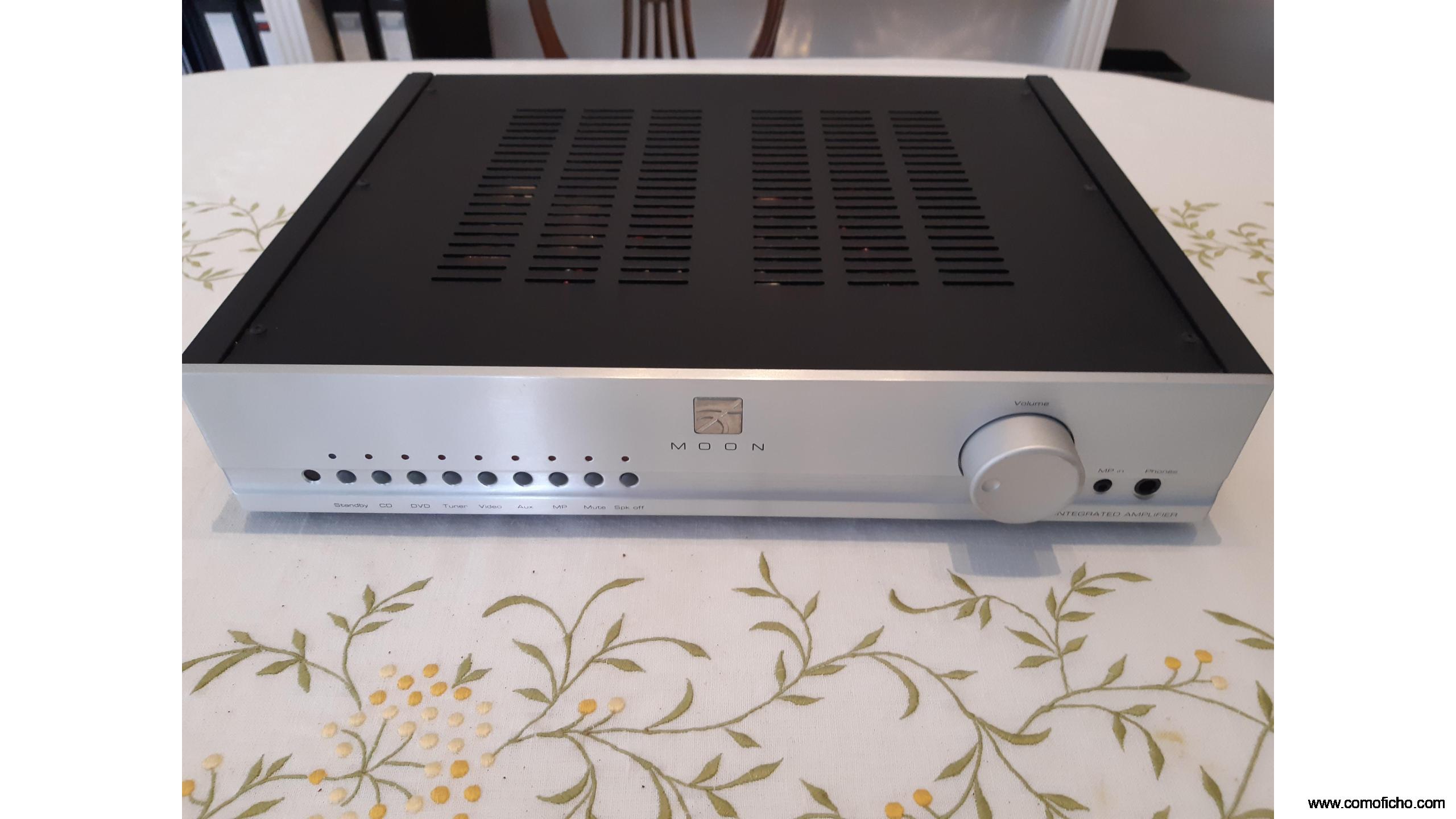 Vendo Amplificador MOON I.5 en perfecto estado tanto estético como de funcionamiento. Potencia rms 40w. a 8 ohm y 80w. a 4 ohm , los primeros 5w. en clase A. Sonido muy trasparente, rápido y neutral. Se incluyen todos los accesorios originales, mando a distancia, cable de corriente, manual de instrucciones y embalaje completo. Gastos de envio incluidos a toda España.