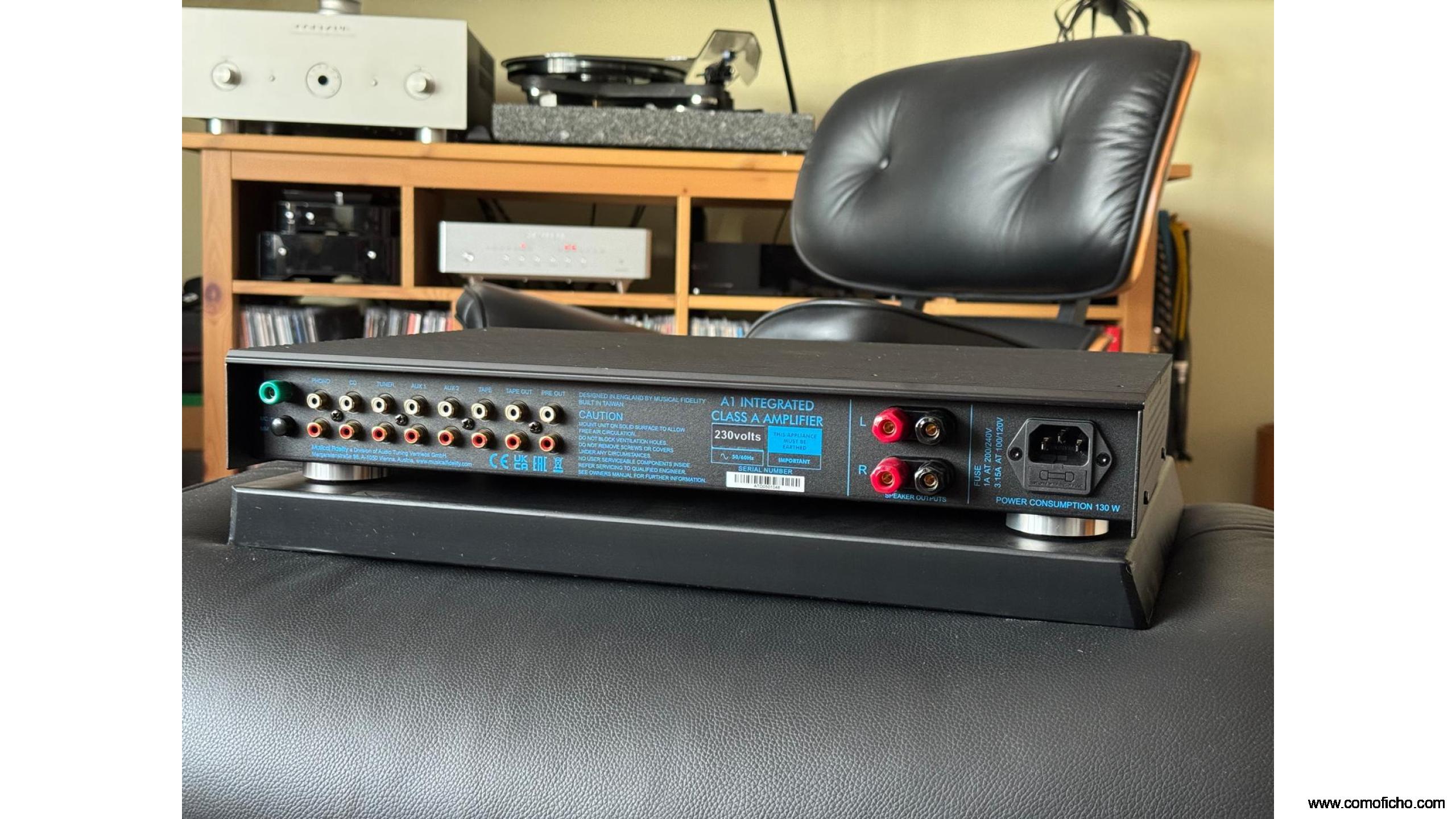 El Musical Fidelity A1 es un amplificador integrado construido con una topología de clase A totalmente discreta y simétrica. Es capaz de entregar 25 W de potencia pura de clase A a una carga de 8 ohmios con una salida máxima de 25 A. Versión actualizada del modelo vendido originalmente en 1988.