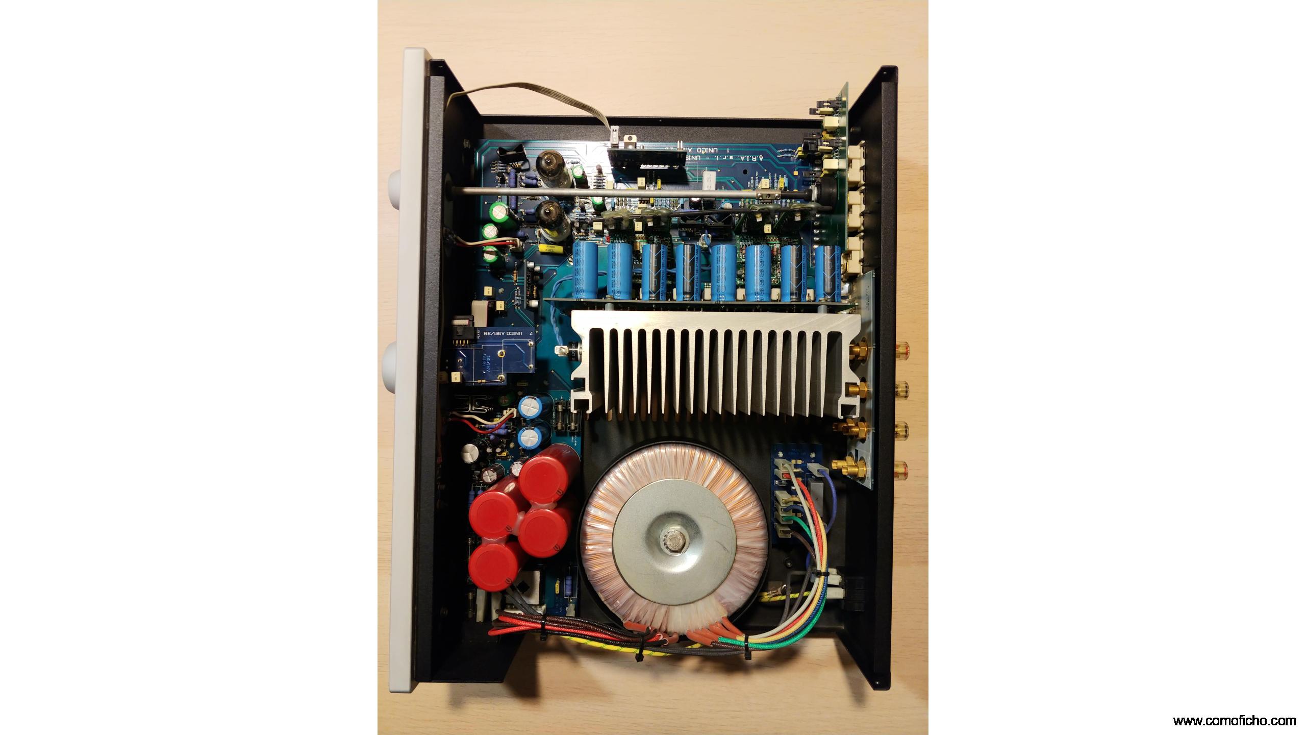 Amplificador de alta gama fabricado en Italia, cálido, musical y poderoso (140 W). Topología híbrida; previo con válvulas ECC82 (12AU7) en la etapa de entrada y transistores MOSFET en configuración simétrica complementaria para la salida. Incluye salida de Phono MM/MC y mando a distancia.