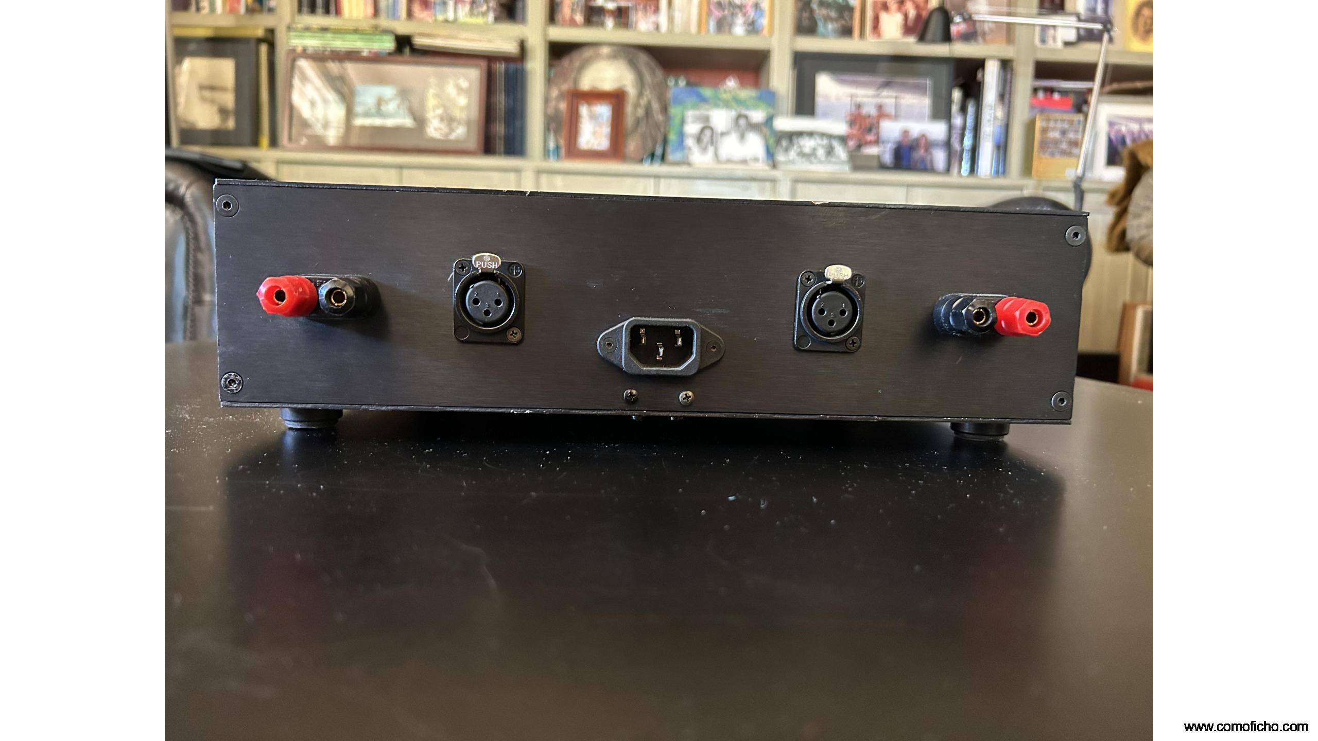 Etapa estero doble mono en un sólo chasis. Construcción doble mono. Es uno de los amplios con menor distorsión existentes. Con 400w x2 mueve cualquier altavoz, por grande o poco sensible que sea. Limpieza, sin ruidos, dinámica bestial, gran escena. Y consumo casi inexistente. Si no suena no llega a 10w en reposo. Ligero de peso.