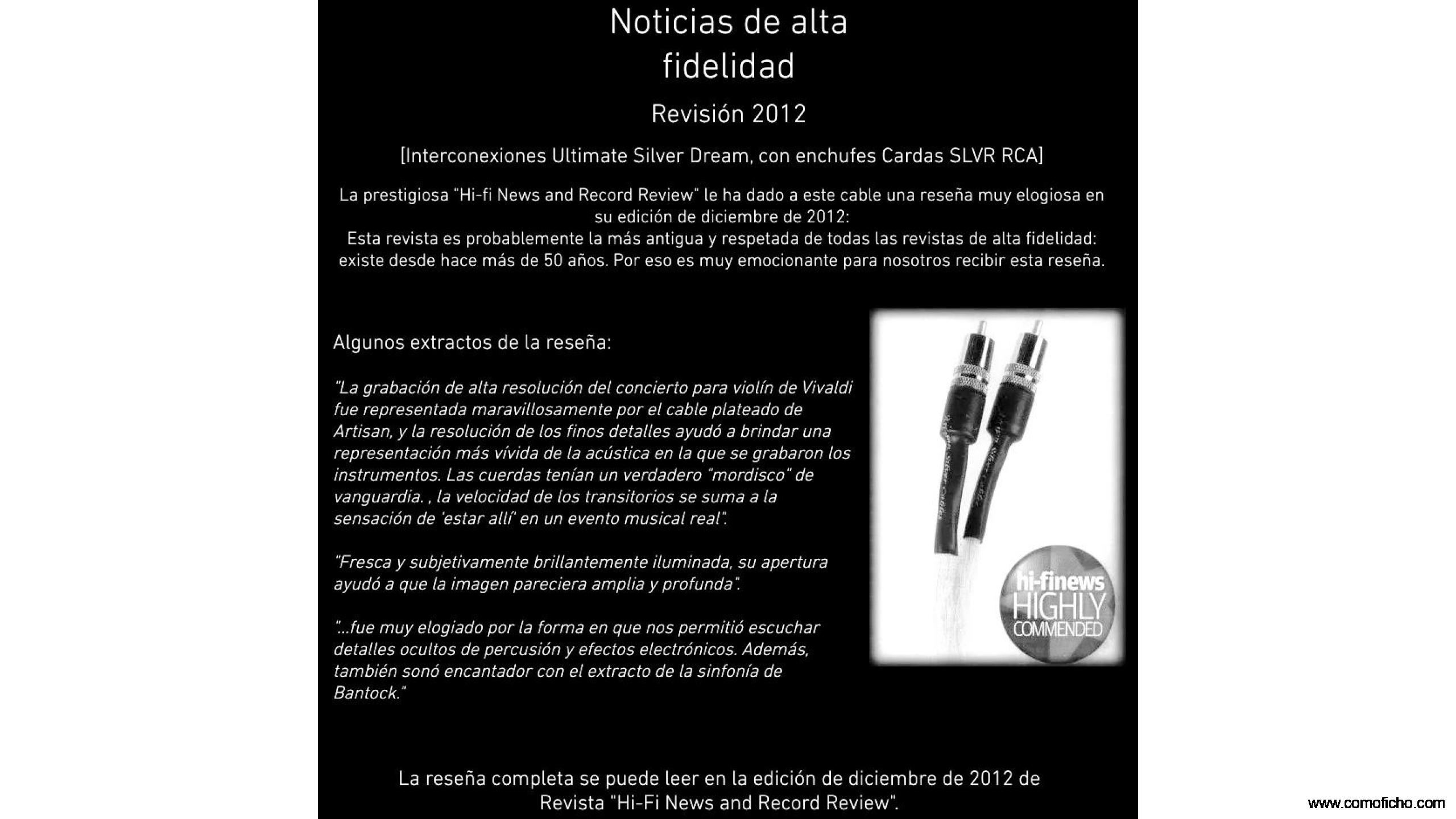 Vendo cable de plata pura Artisan Silver Cables, modelo Ultimate Silver Dream de 1,25m de longitud y conectores Cardas SLVR