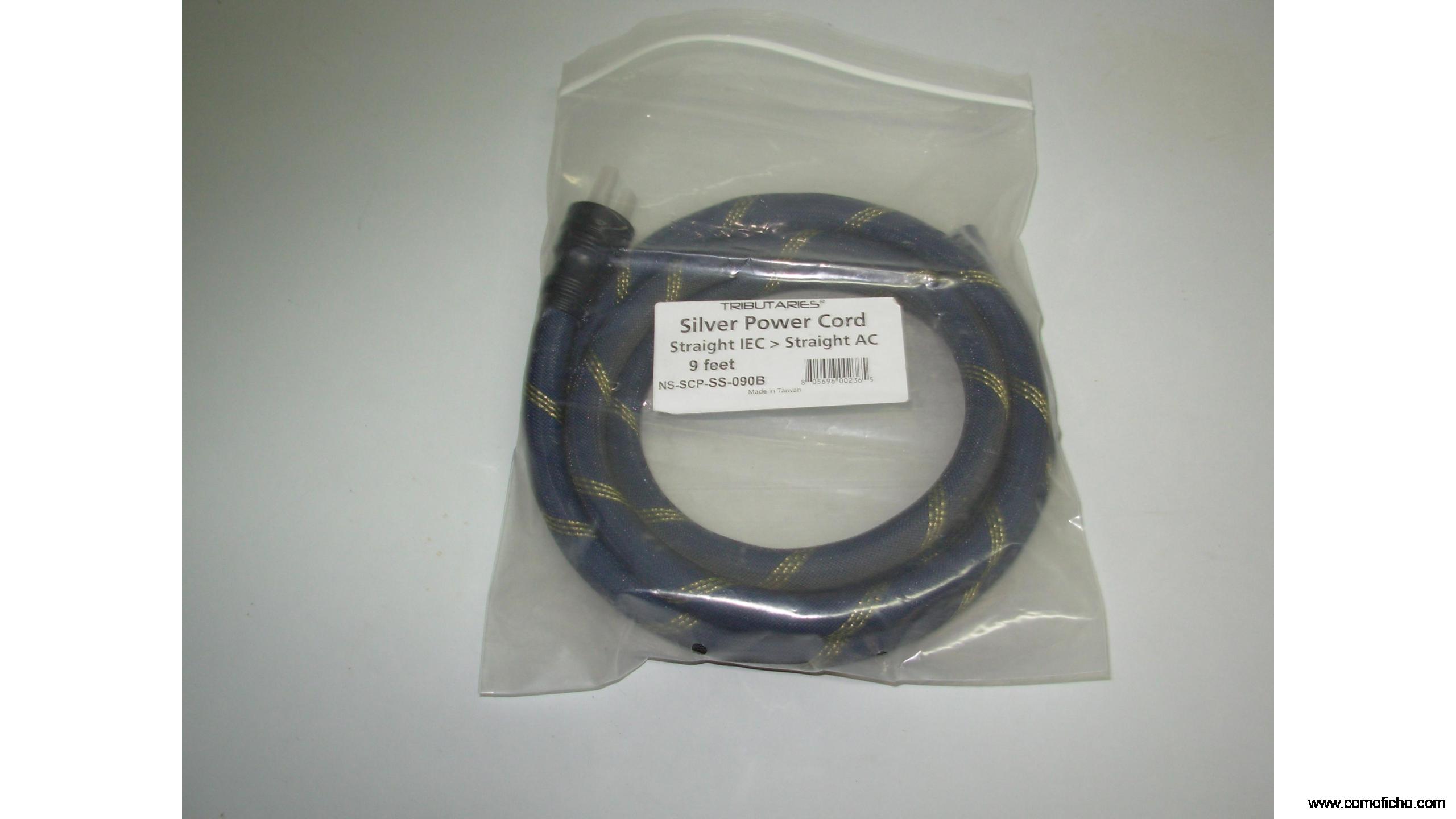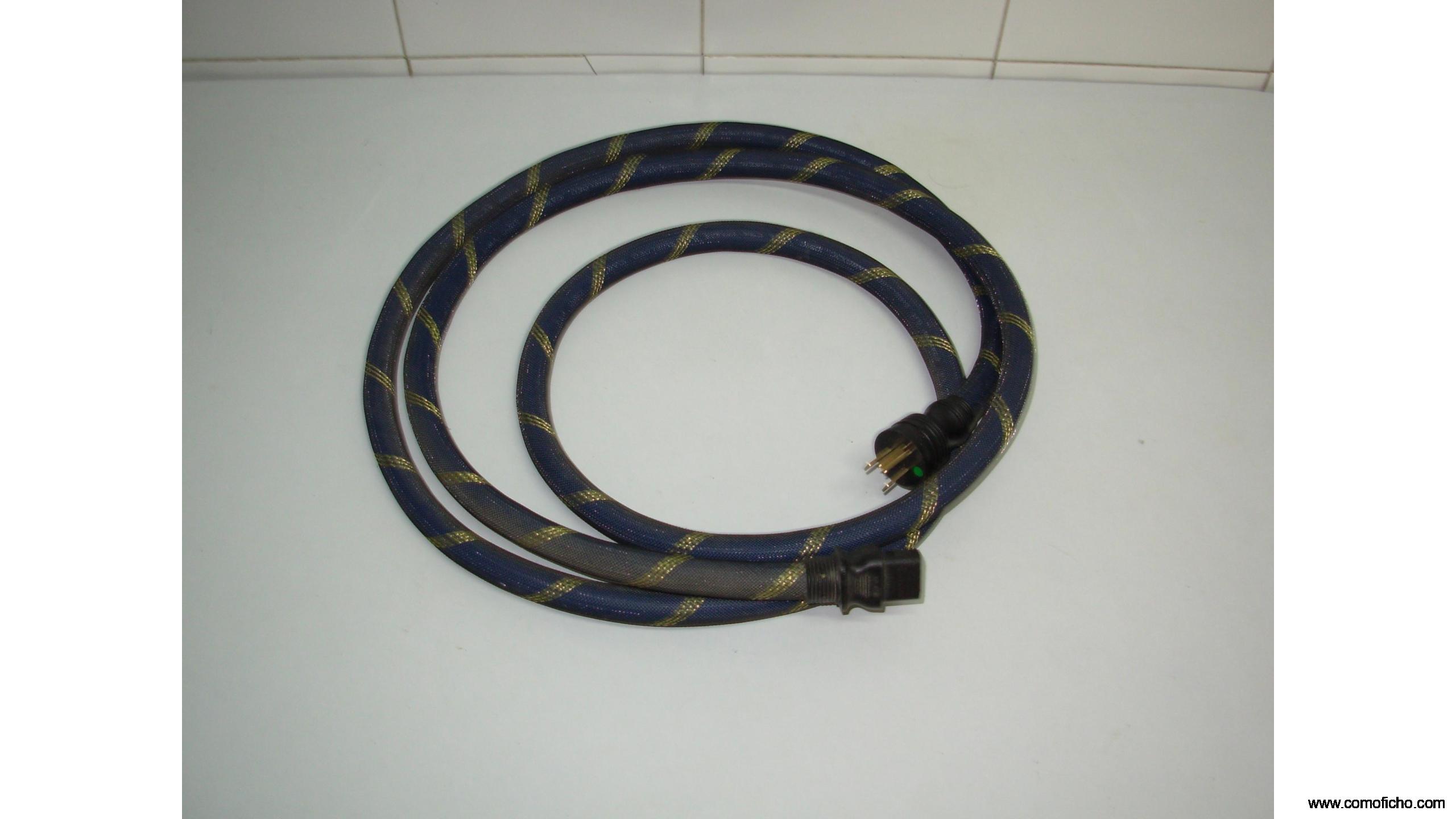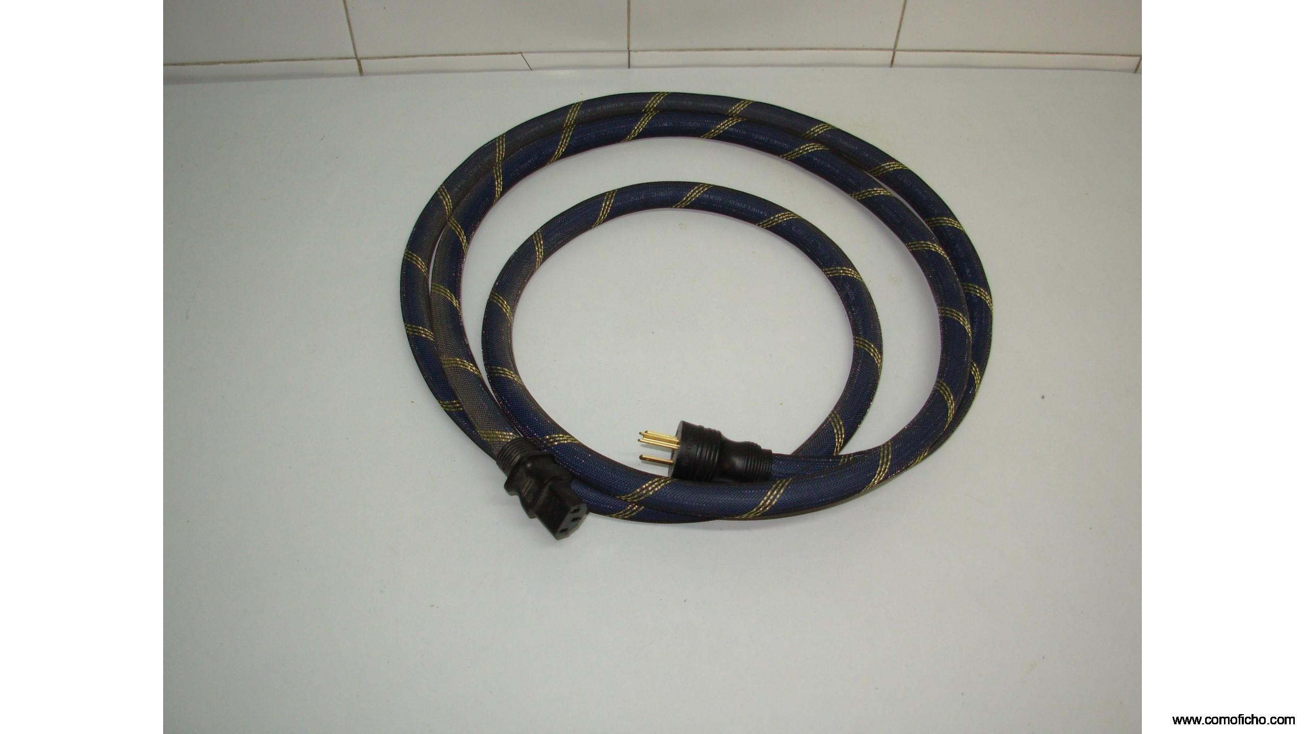 Cable de alimentación de la marca "TRIBUTARIES" de USA, muy reconocida y recomendada por las revistas de hi-fi en los Estados Unidos, de 2 metros y con enchufe americano de 3 pins, con adaptador a enchufe europeo. Es comparable o superior a los cables Van Den Hul The Mainsstream, es un cable rígido y con malla protectora resistente de tres capas de aislamiento, con 14 mm de diámetro y con un diseño trenzado en azul y detalles dorados. Conectores de alta calidad. Viene con su bolsa original y está nuevo, sin usar. Su precio en internet ronda los $300. Precio negociable.