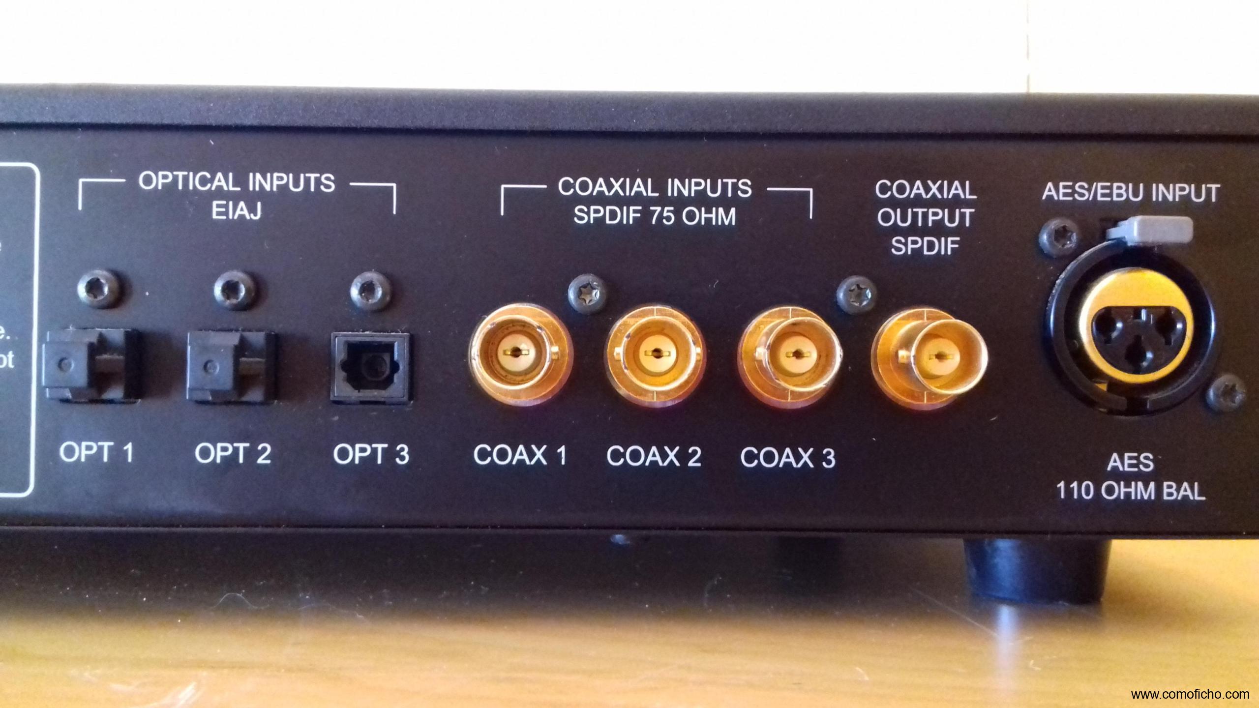 * Entradas: 3 SPDIF (BNC), 3 Toslink y 1 AES/EBU balanceada