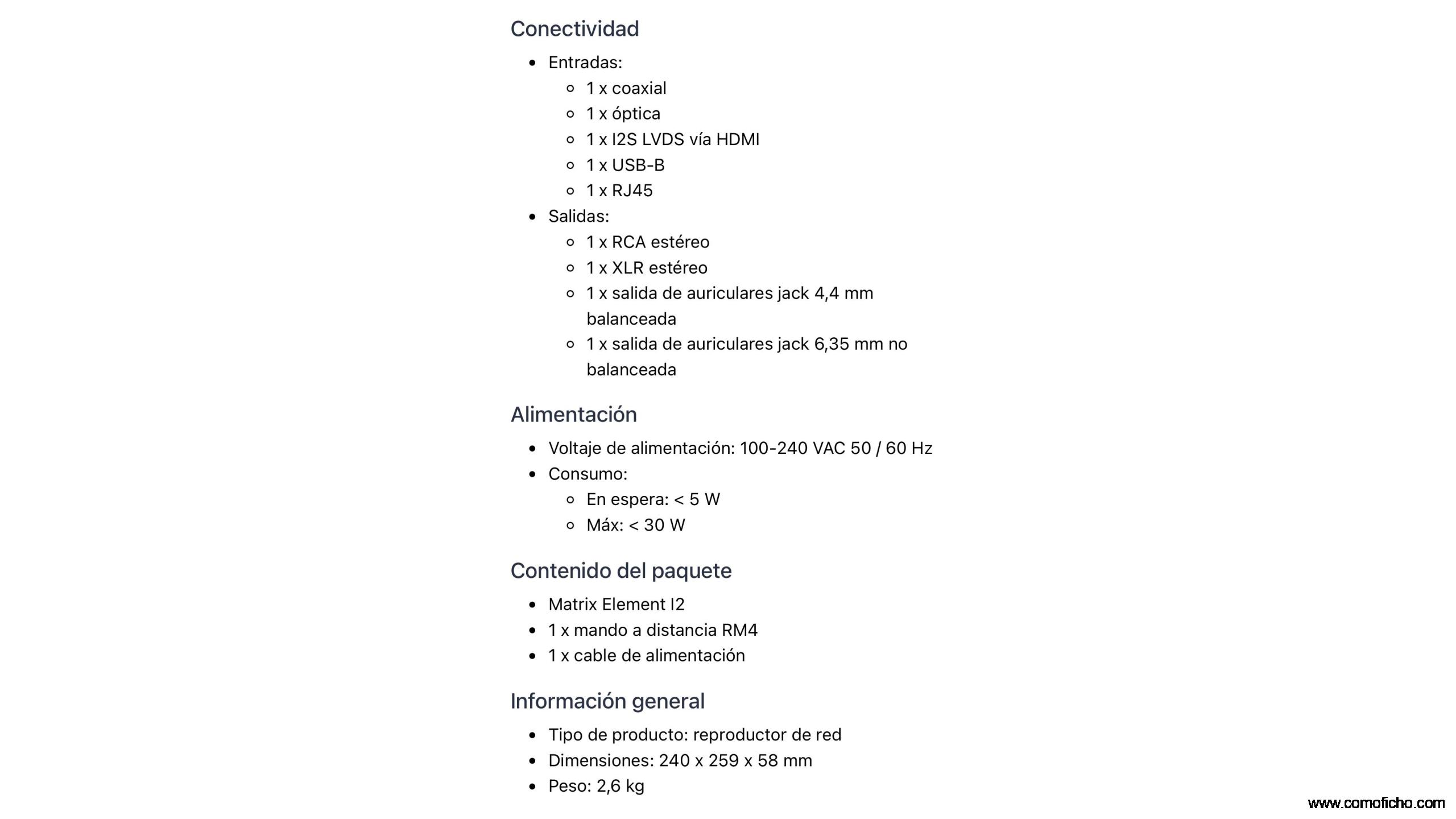 Reproductor de audio digital Matrix Element i2 en color plata.