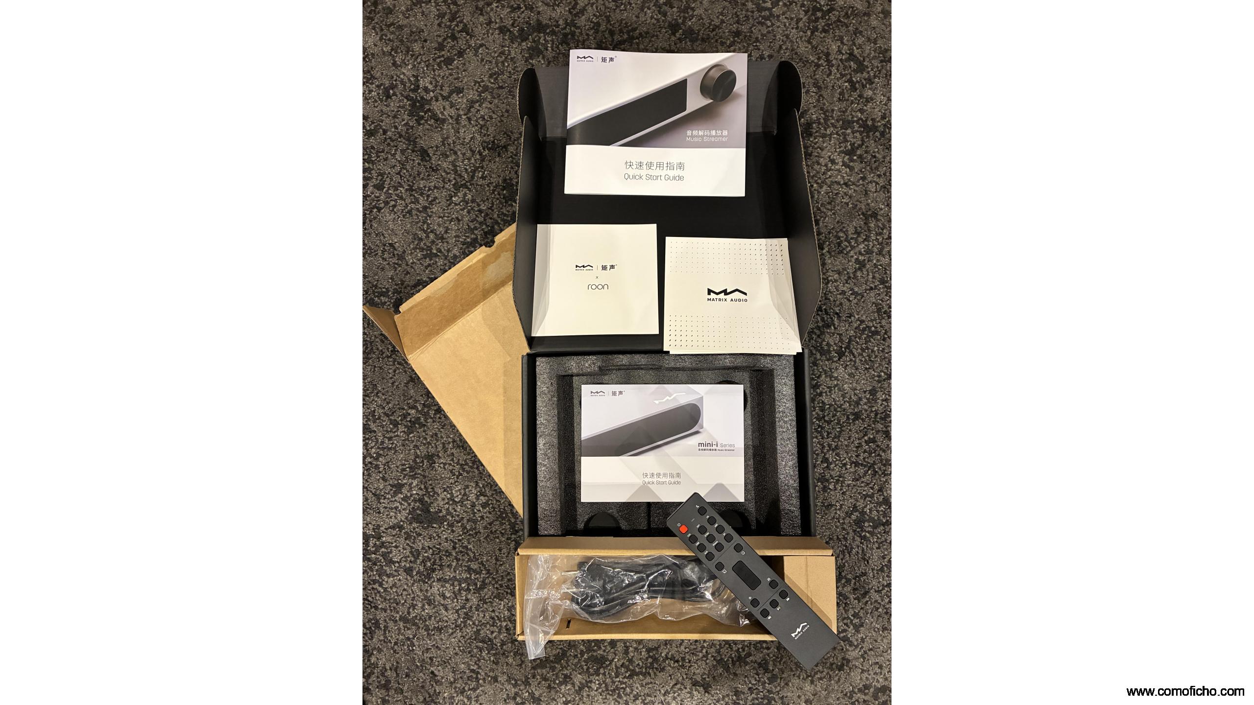 Doble embalaje original, mando, cable de red (sin usar...), manuales... todo lo que trae de fábrica.