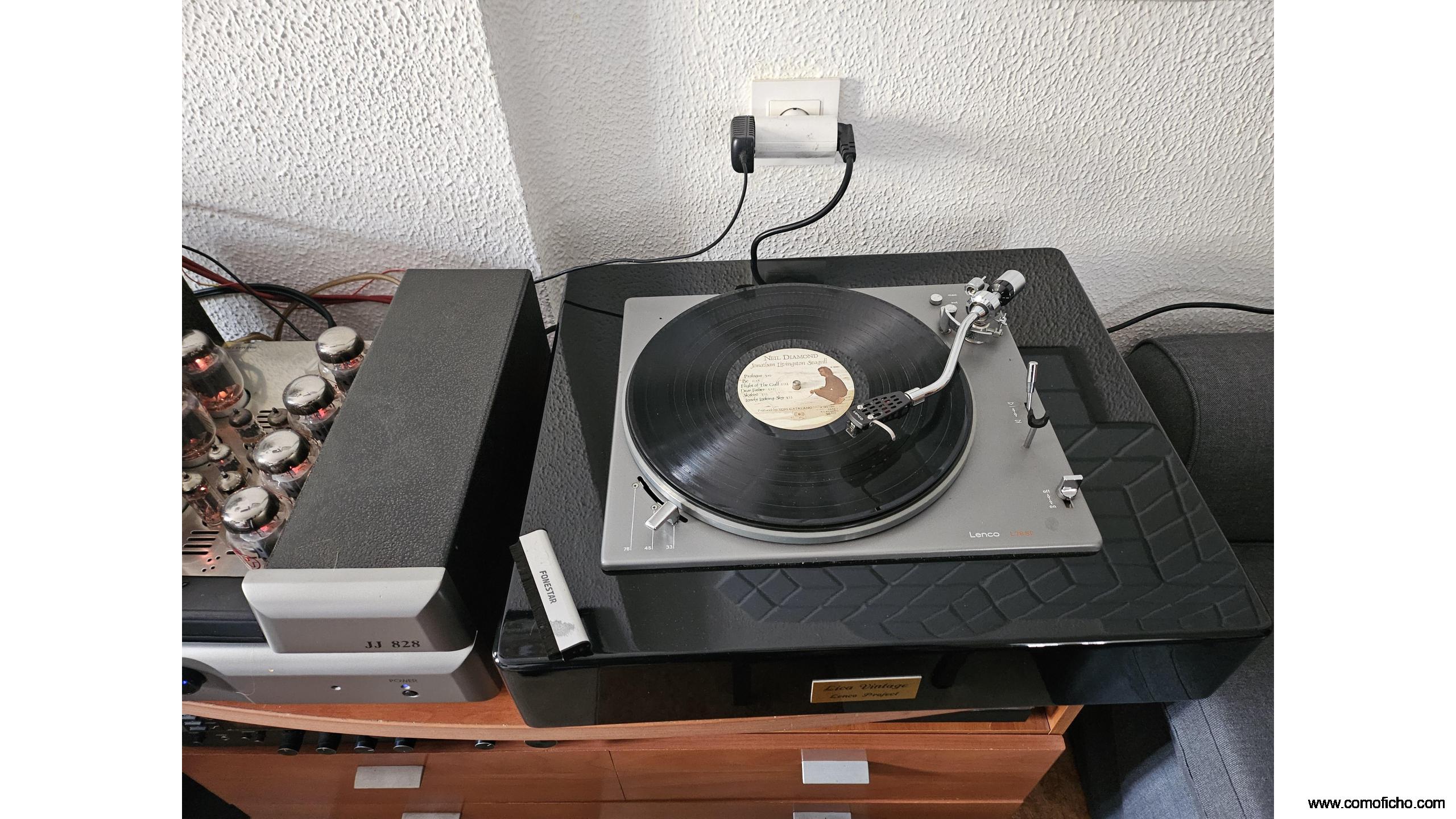 Este giradisco clásico de LENCO se merece una peana como ésta.En total pesa 18.8 kg.Está equipado con una cápsula ORTOFON MC 15 SUPER II.El brazo es mejor que el modelo anterior.Los cables de conexión han sido sustituidos por otros más gruesos y largos de la mejor calidad.Funciona perfectamente.No se puede enviar.Mas imágenes por Whatsapp.