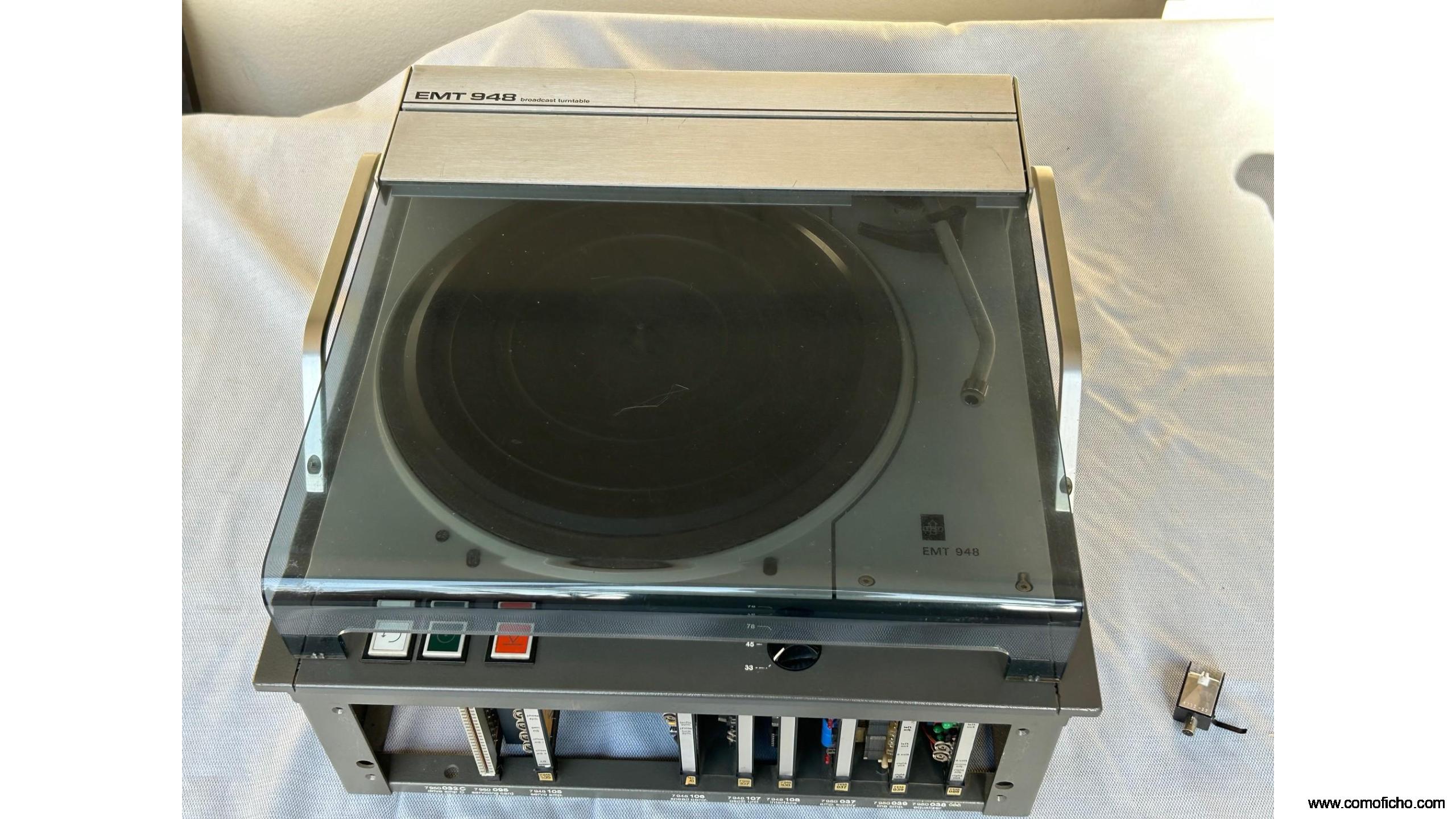Plato de referencia de estudio profesional. Modelo 948, el más alto después del 950. Con el mimo brazo, el EMT929 y la cápsula EMT TSD15 de bobina móvil.