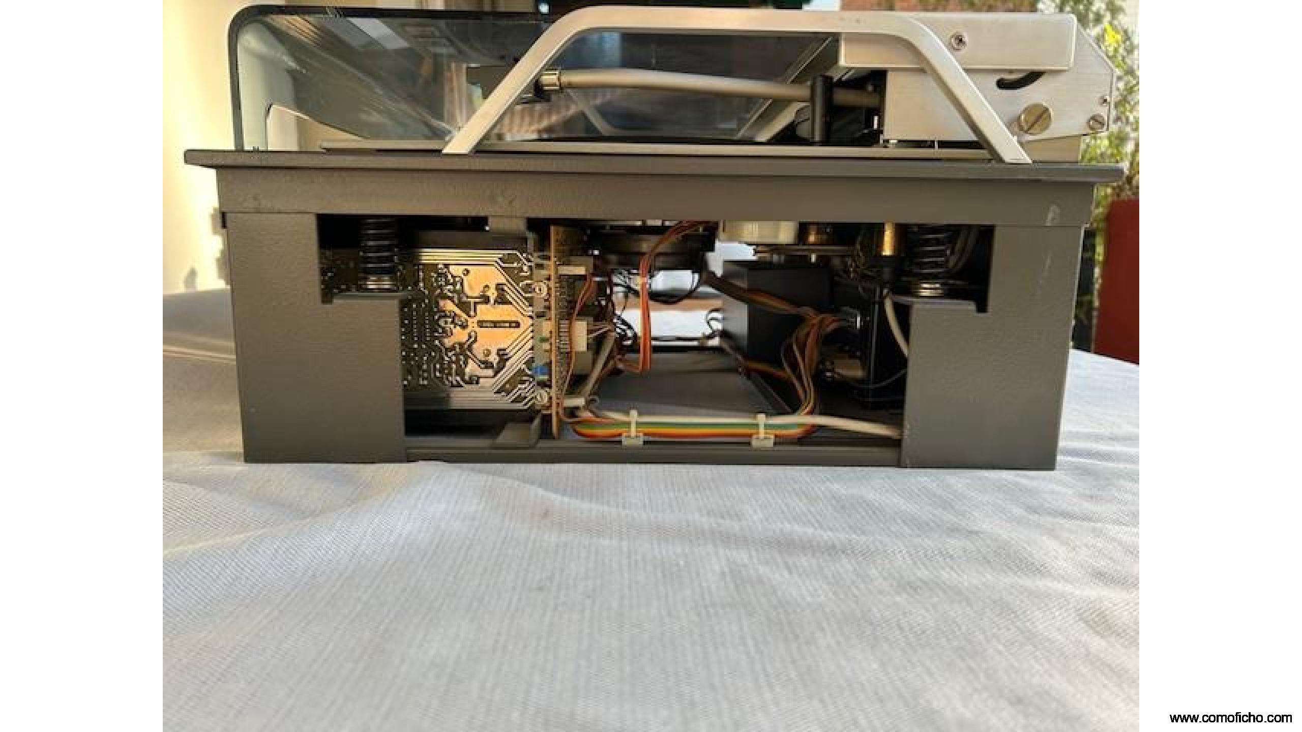 Con la cubierta original de metacrilato que permite aguantar la portada del vinilo en escucha.