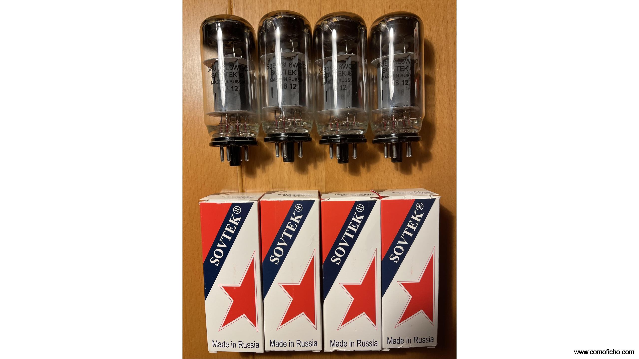Vendo 4 tubos de vacío nuevos a estrenar y pareados de la marca Sovtek (5881 ) adquiridos a la marca japonesa Leben a través de su distribuidor autorizado.