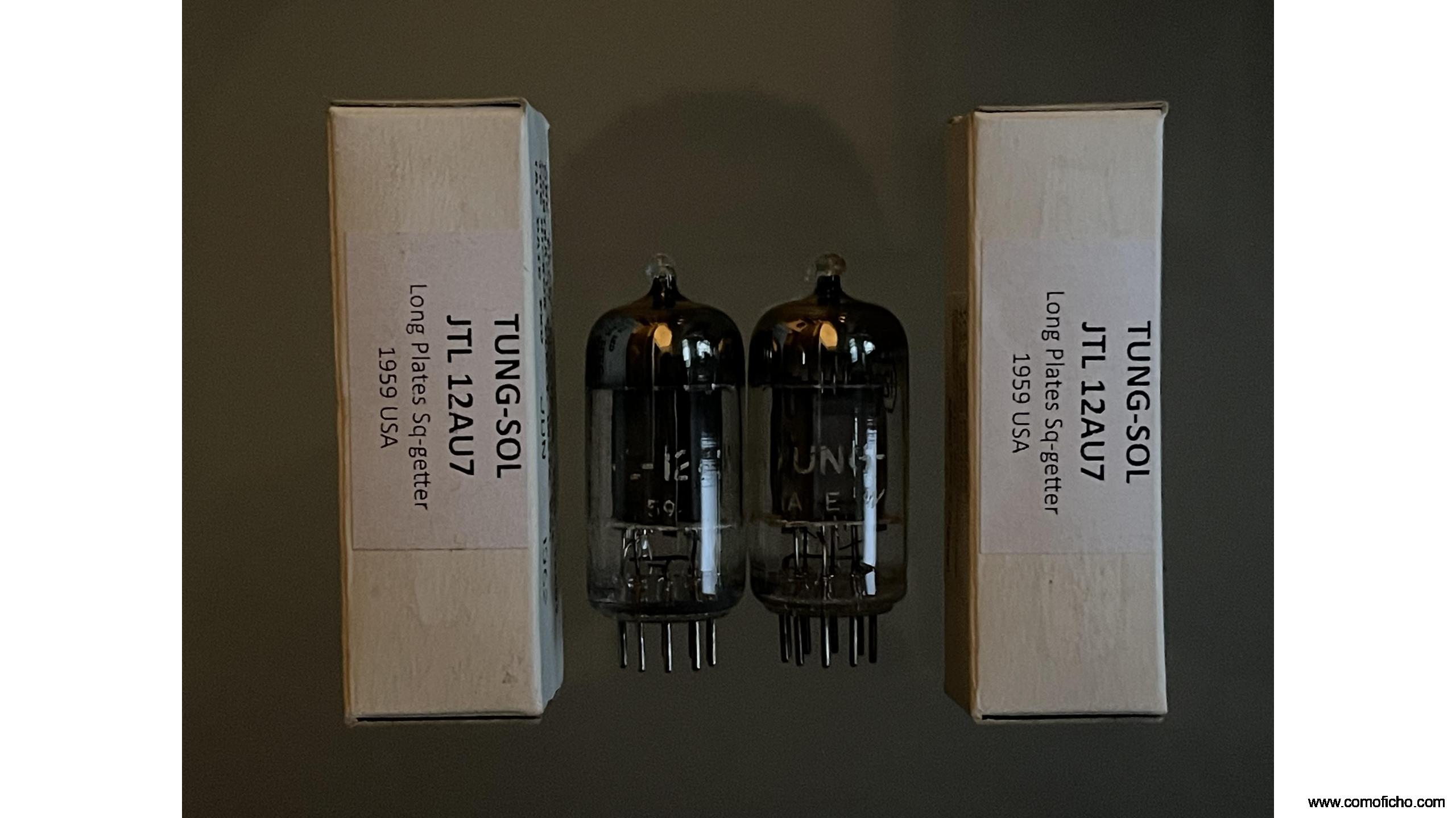 Dos unidades nuevas de válvulas pareadas 12AU7 NOS TUNG-SOL. Made in USA (años 50). Getter cuadrado. Sin usar.