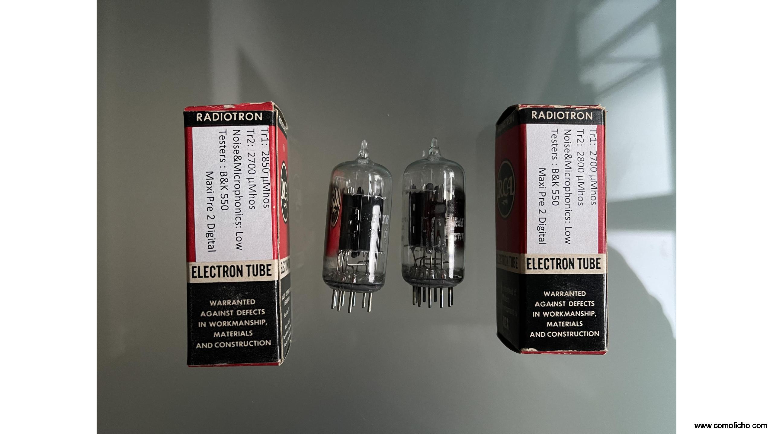 Dos unidades nuevas de válvulas pareadas 12AU7 NOS RCA. Made in USA (años 60). Sin usar.
