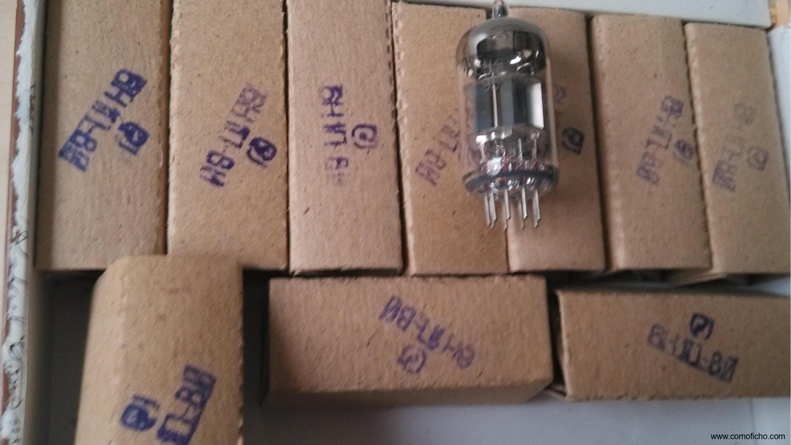 • 14 válvulas “OTK” 6H1π NOS (1 Y 2) = 7 pares, nuevas (5 pares BN y 2 pares EB), 35 euros el par. (Si se adquiere todo el lote, a 175 euros).