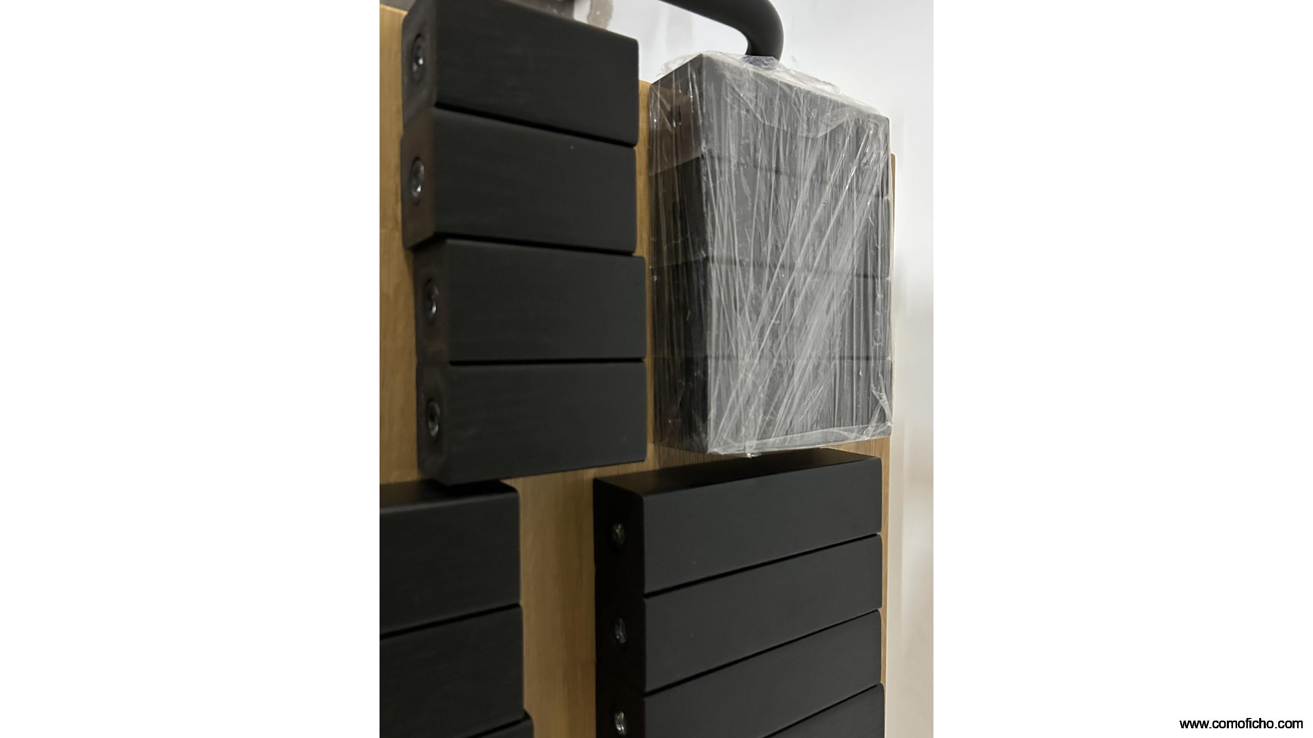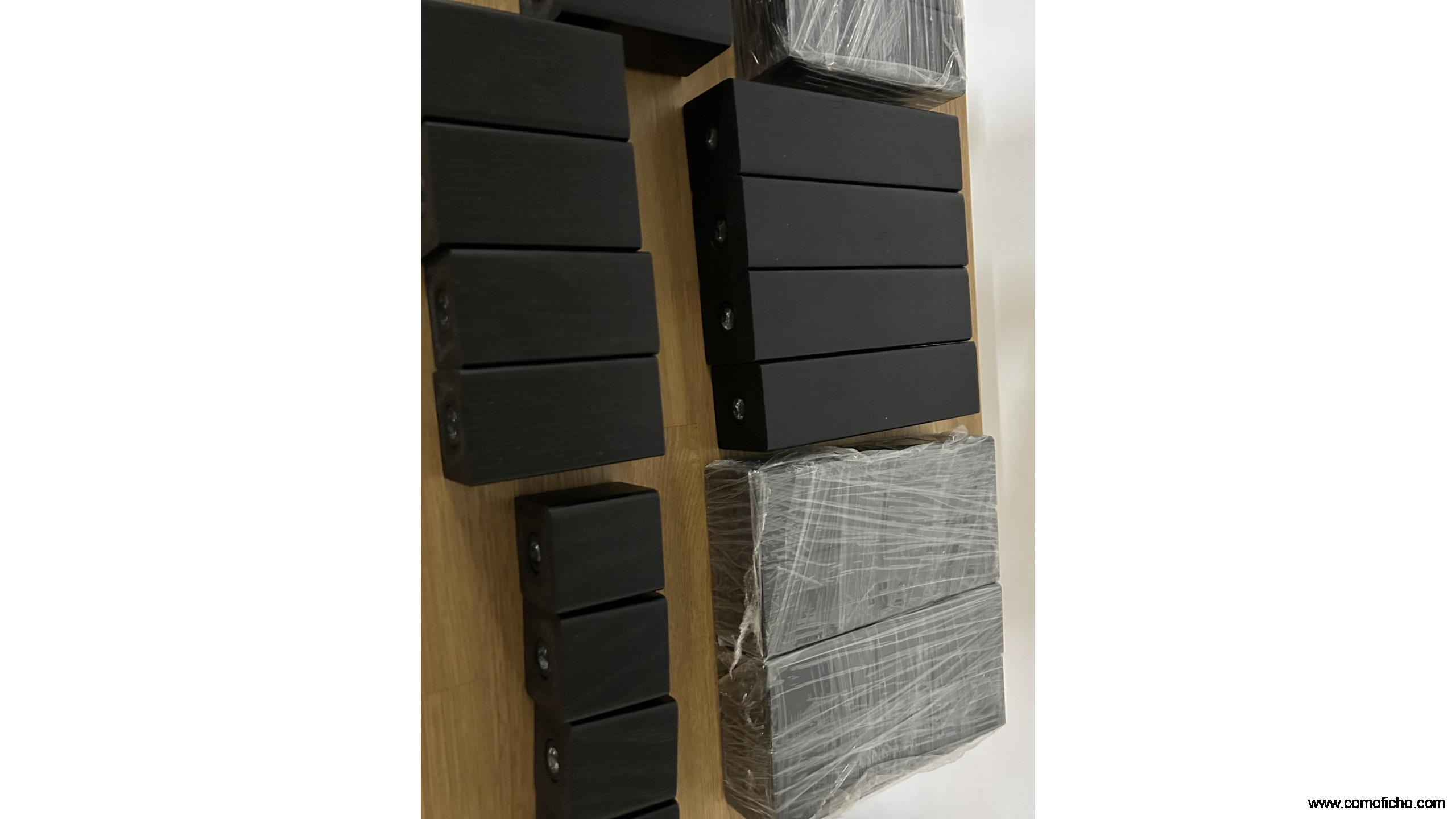 Como accesorio incluido, para montar un mueble a la medida que se quiera de altura, se añaden SEIS juegos de patas de Roble en color negro, de diferentes alturas.