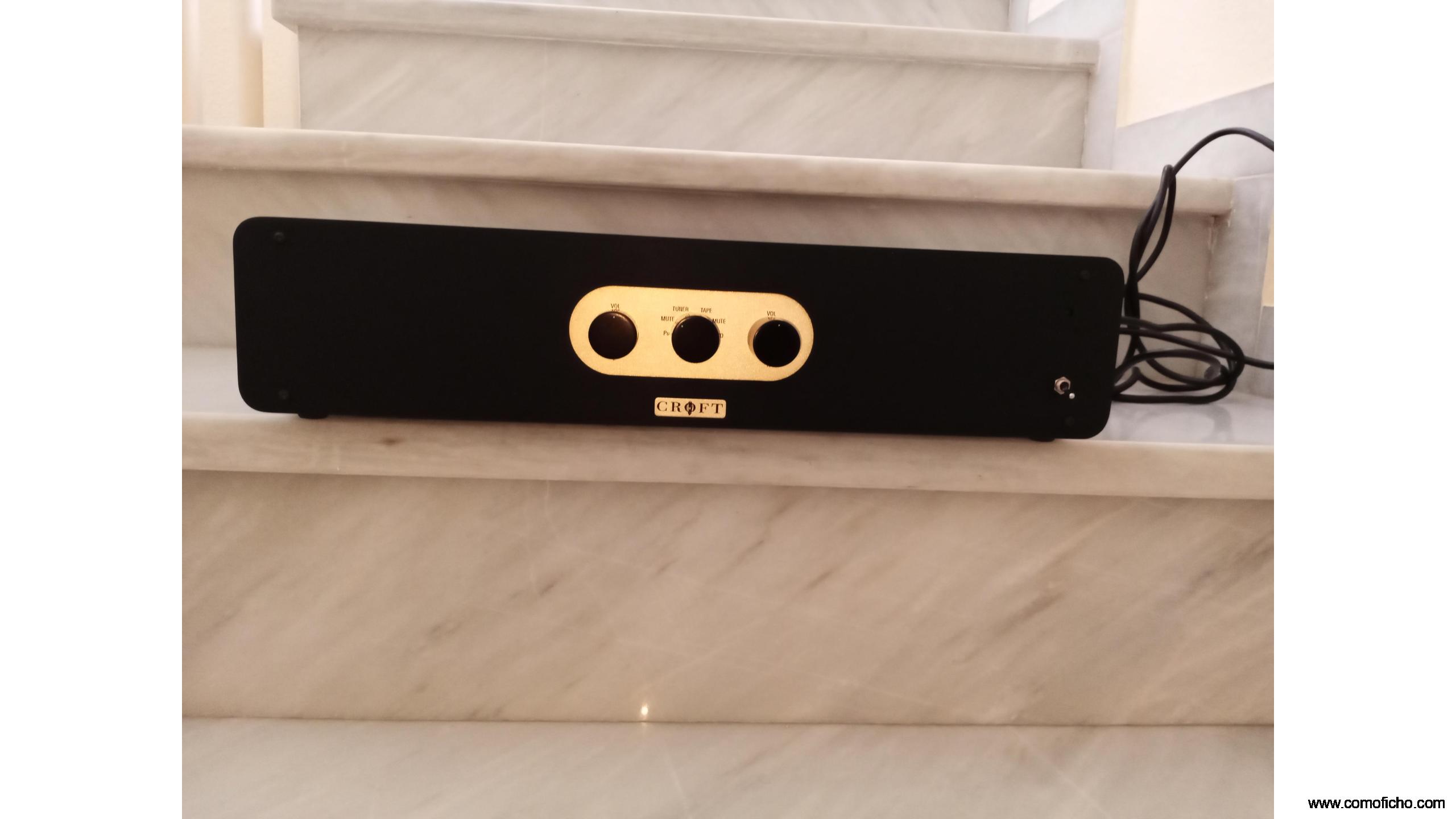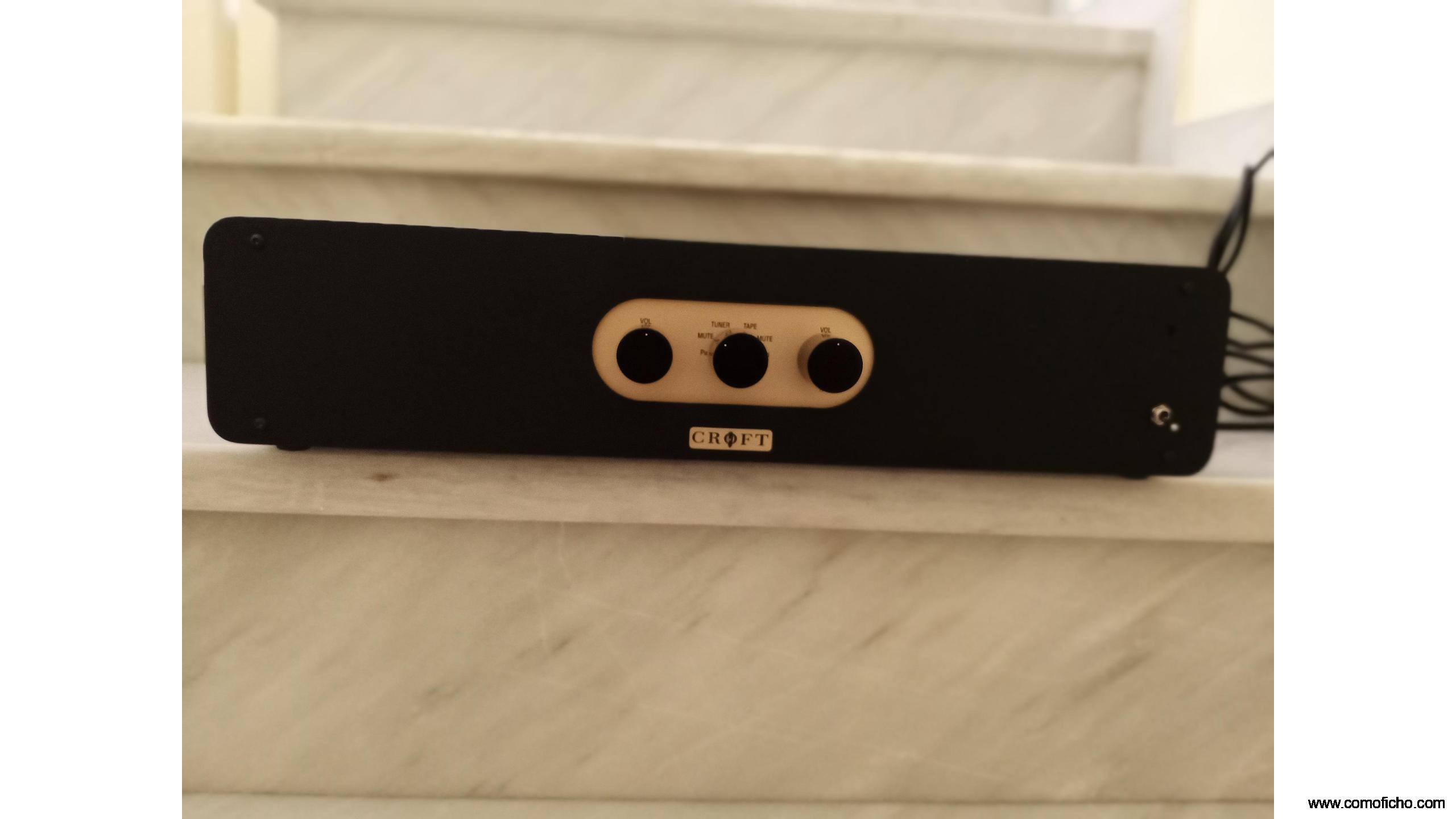Sólo tres controles: potenciómetos individuales para cada canal, facilitando la corrección de eventuales diferencias de un canal sobre el otro y selector de fuente , con mute entre una selección y otra.